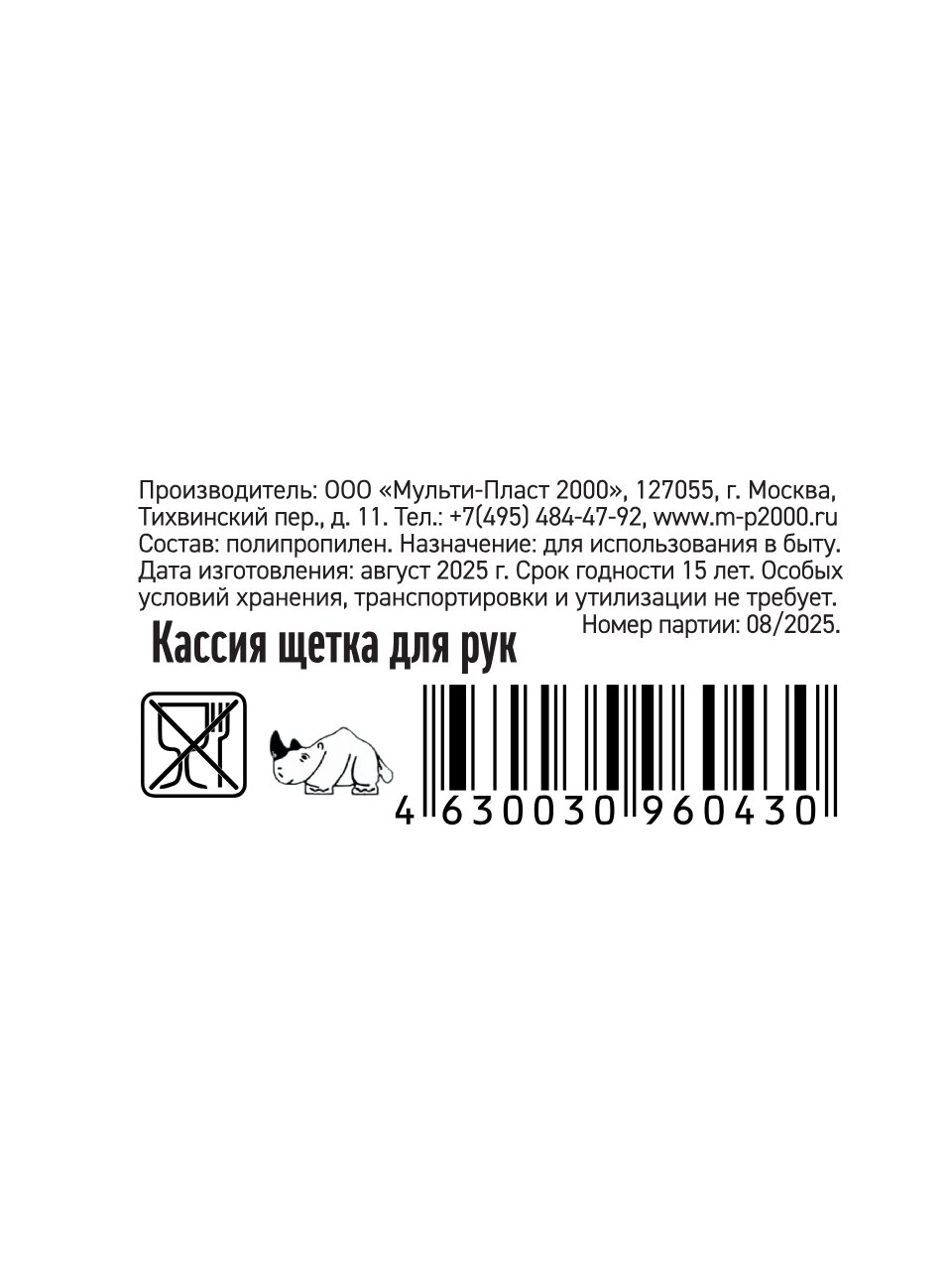 Щетка для рук Кассия 3х9х5.5 см — компактная и долговечная пластиковая щетка для быстрой очистки рук дома, на даче и в мастерской. Экономьте время и берегите кожу!