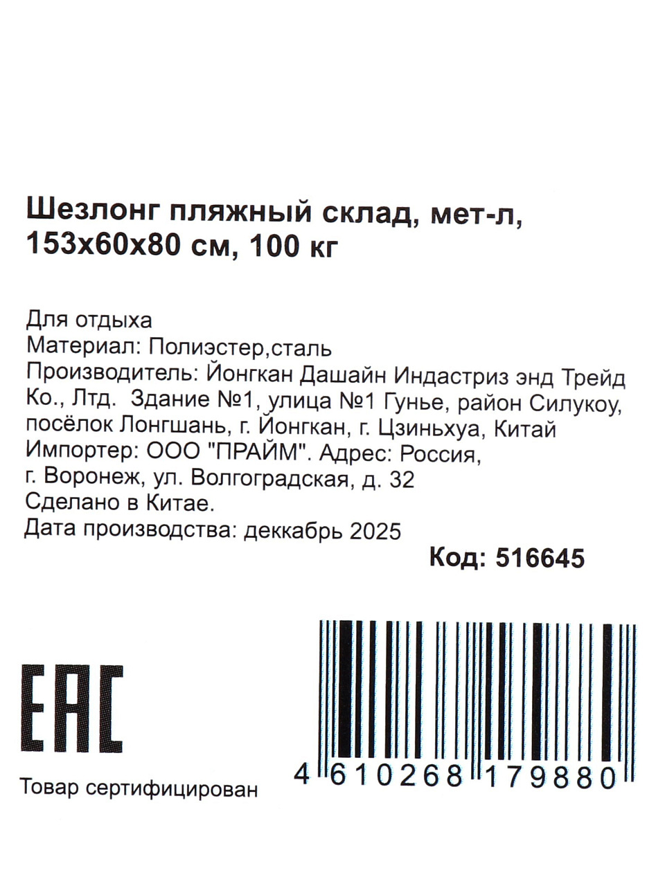 Оформите заказ сейчас и получите складной шезлонг с доставкой по выгодной цене — отдыхайте с комфортом и уверенностью в качестве.