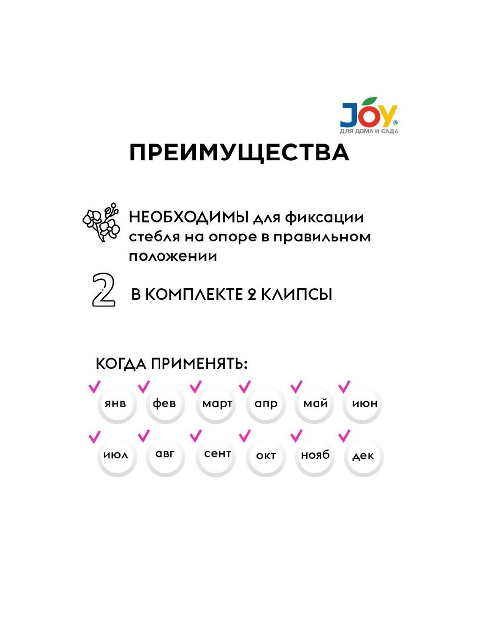 Покупка клипс JOY — это удобство ухода за цветами и поддержание их аккуратного внешнего вида без лишних усилий.