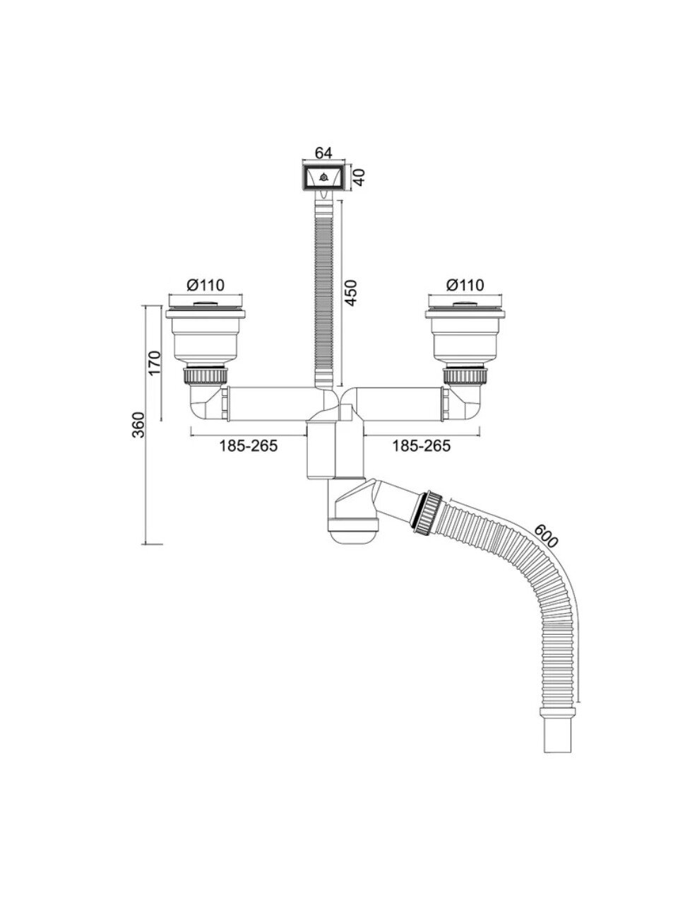 Сифон для мойки Orio Nordform 600 мм — универсальное решение с двойным переливом и гибкой трубой для кухни и дачи. Лёгкая установка, долговечность, оптимальная цена.
