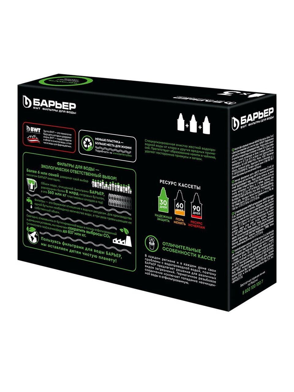 Одна кассета Барьер способна заменить несколько сотен пластиковых бутылок. По окончании ресурса кассеты можно сдать на переработку в пунктах приема.