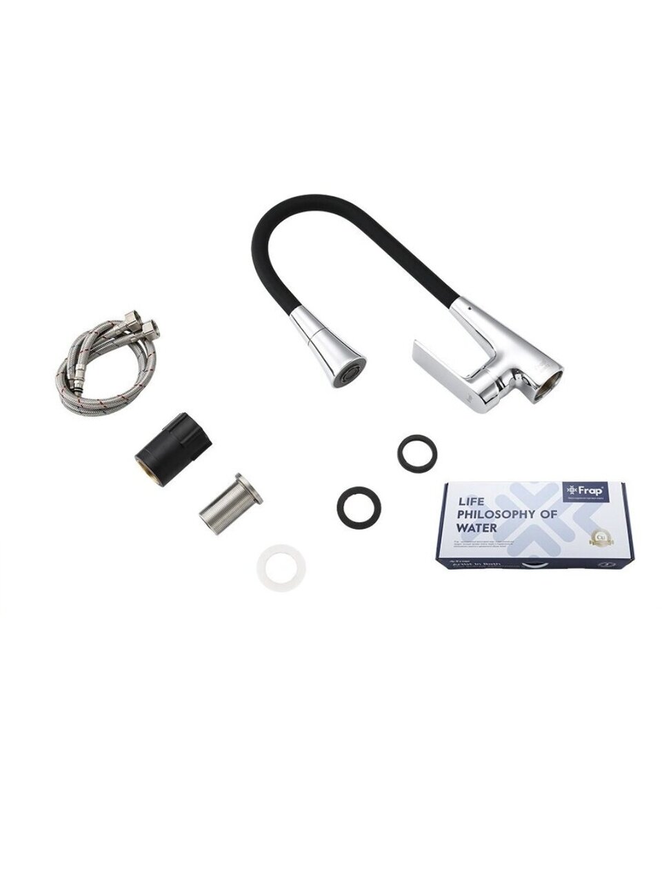 Гибкий смеситель Frap F4471: стильный выбор для кухни с латунным корпусом, высоким изливом 22,9 см и простым монтажом — идеальное решение для дома и дачи.
