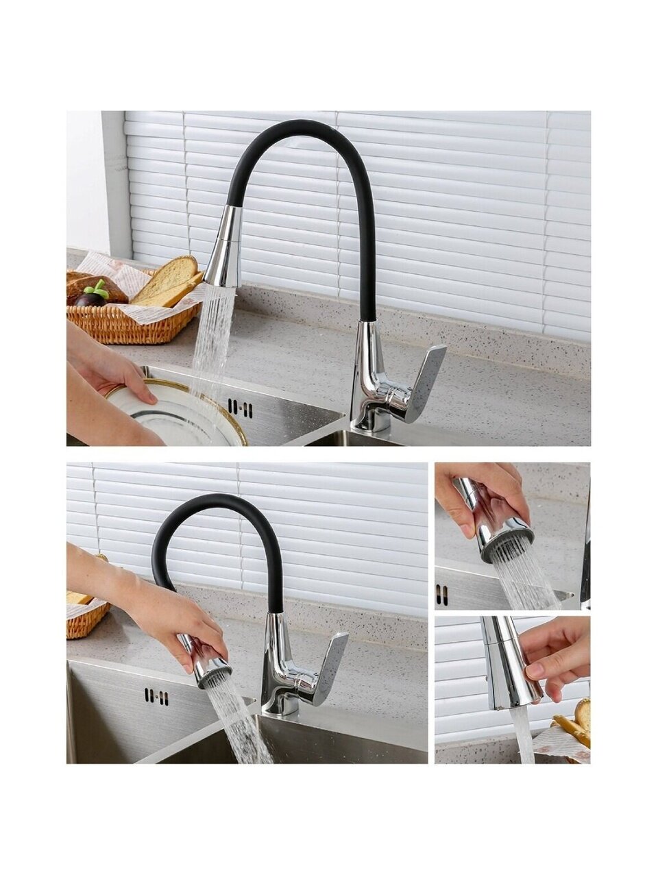 Frap F4471 с высоким гибким изливом (22,9 см) отлично подходит для глубоких раковин и больших кастрюль благодаря свободе перемещения и удобству подачи воды.