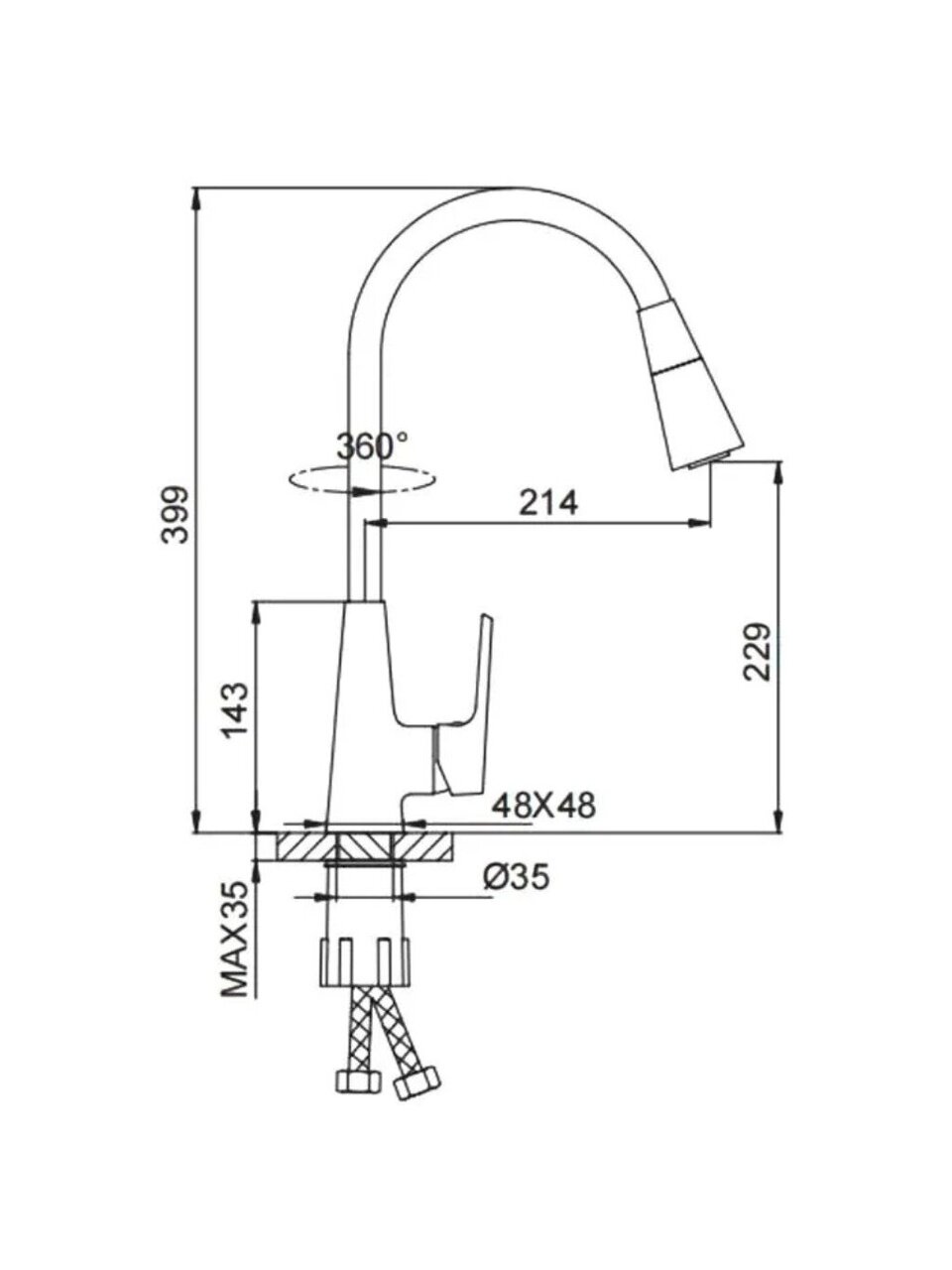 - Высота излива, см22.9 см