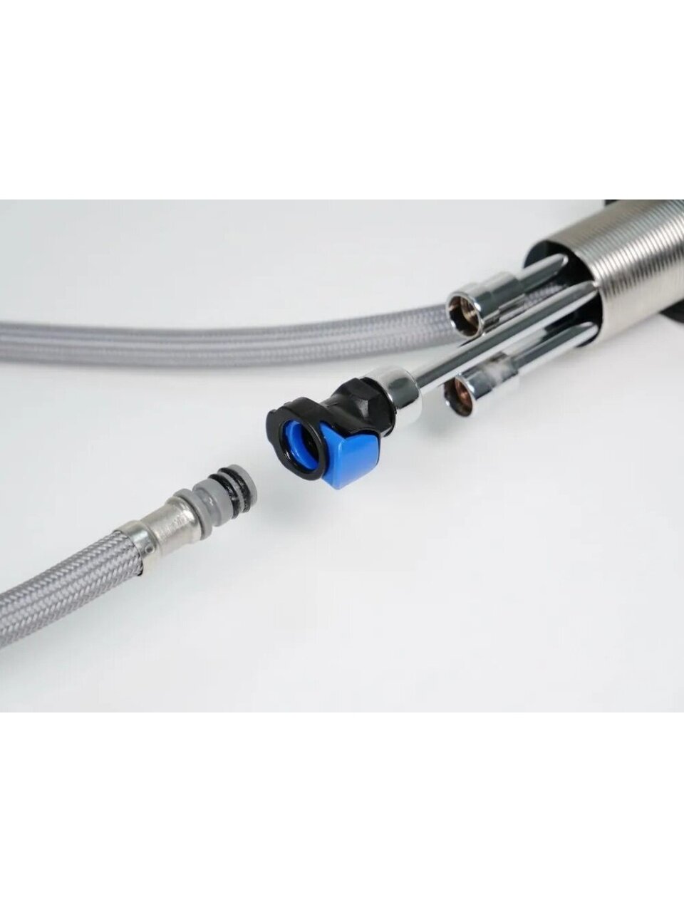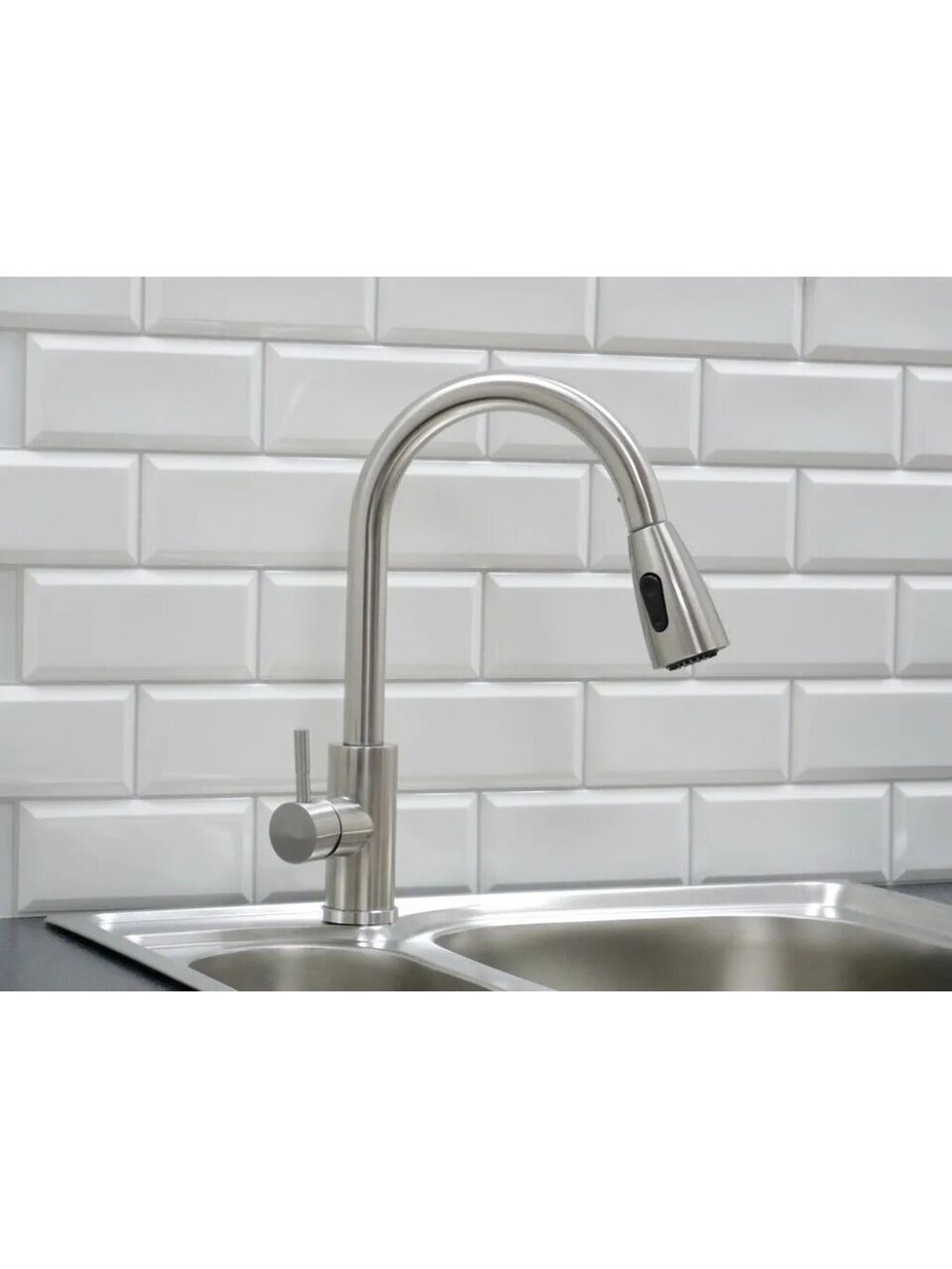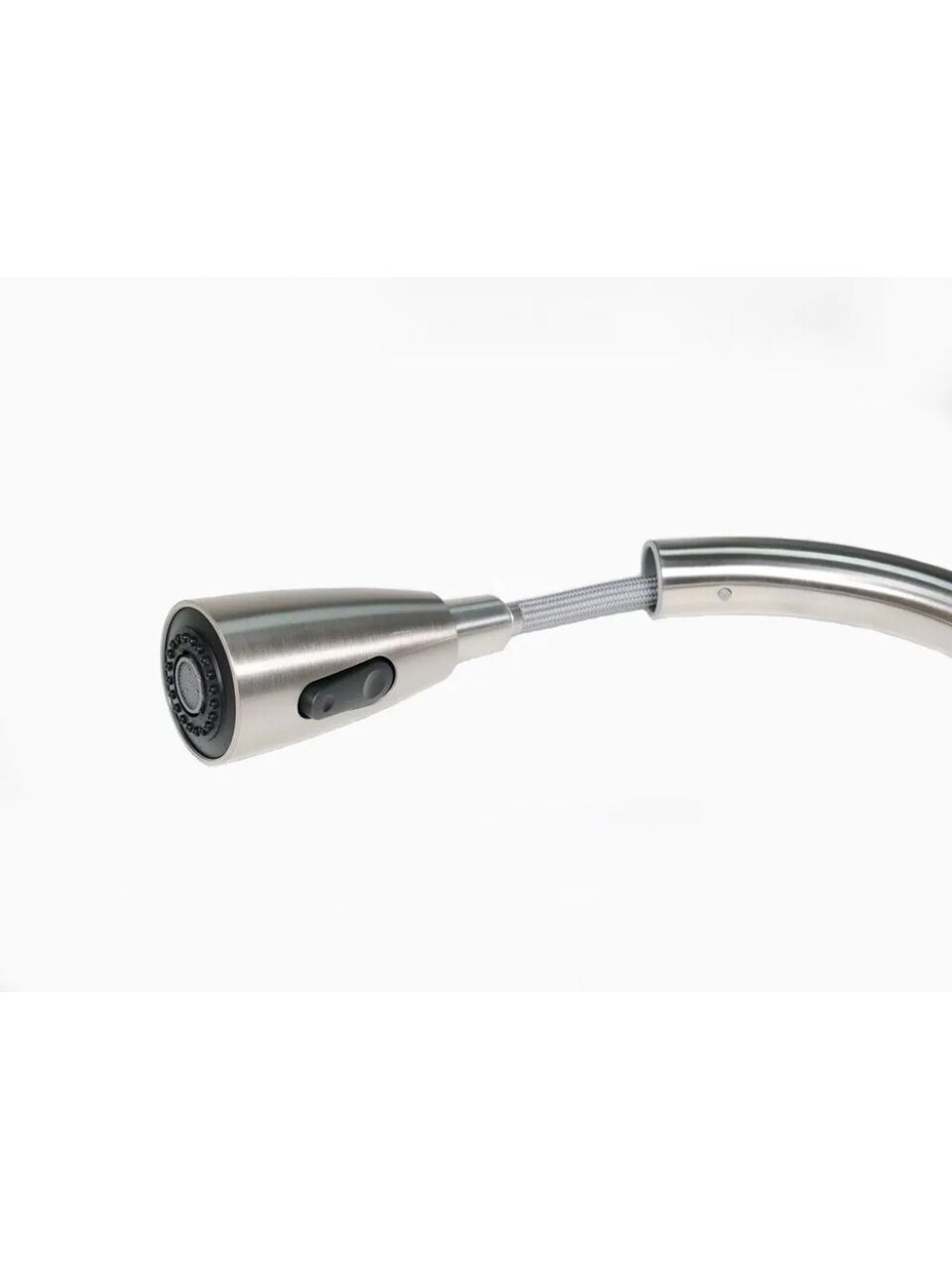 Смеситель для кухни Potato P0046S с выдвижным изливом — стильное решение для экономии воды и удобства мытья посуды. Матовая нержавеющая сталь, гибкая подводка, простой монтаж.