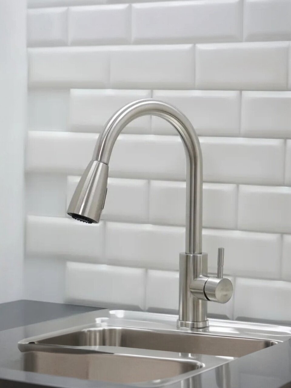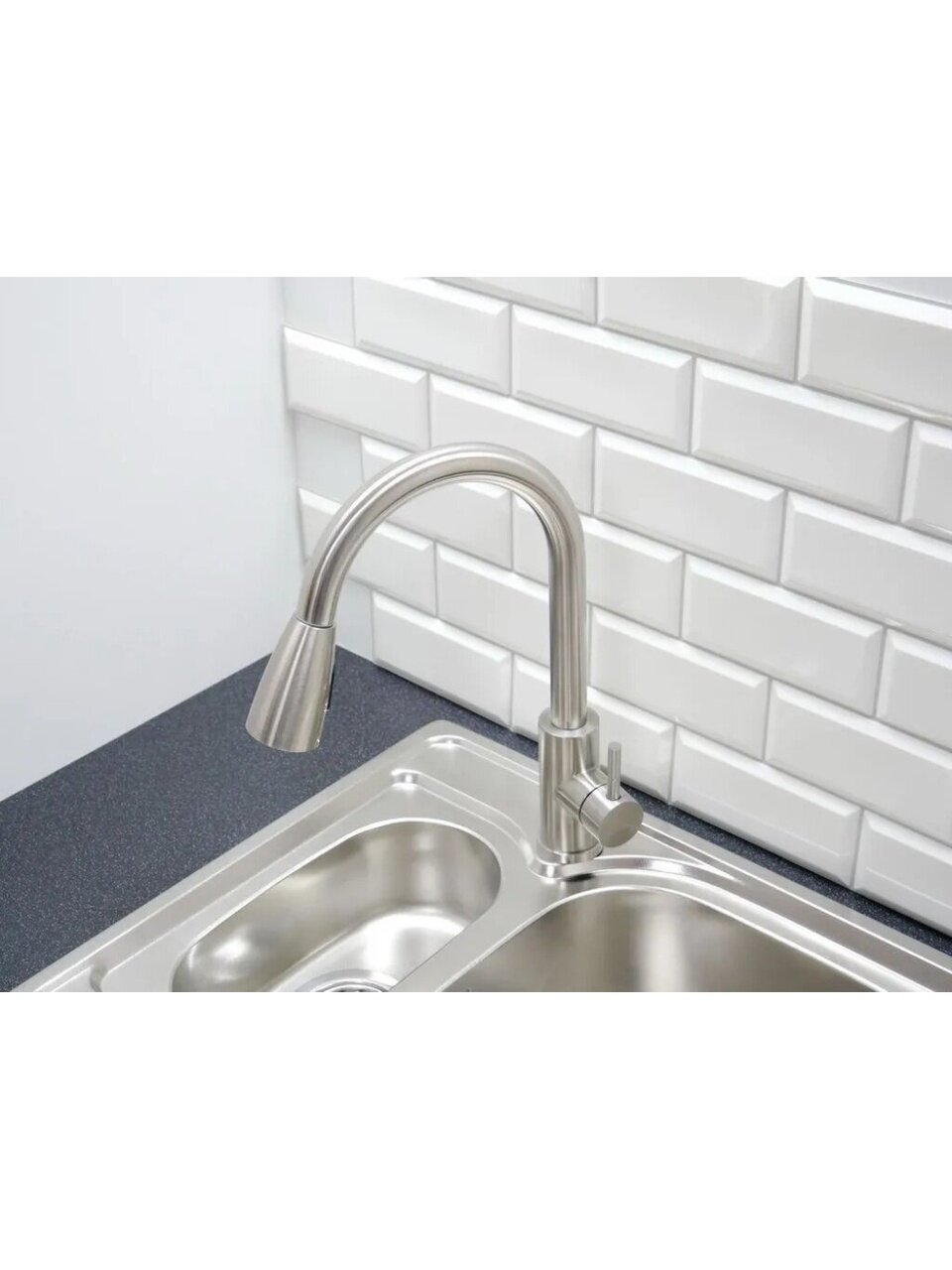 Смеситель для кухни Potato P0046S — выбор, который совмещает современный дизайн, долговечность и функциональность. Благодаря выдвижному изливу и длине 21 см, он подходит для глубоких раковин и облегчает уход за крупной посудой. Матовая поверхность из нержавеющей стали устойчива к царапинам и легко очищается, что важно для ежедневного использования на кухне.