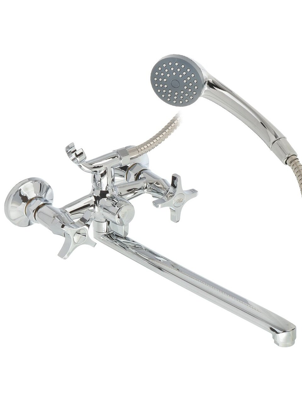 - Удобство: двухвентильный механизм и длинный поворотный излив 35 см для легкого переключения между ванной и душем