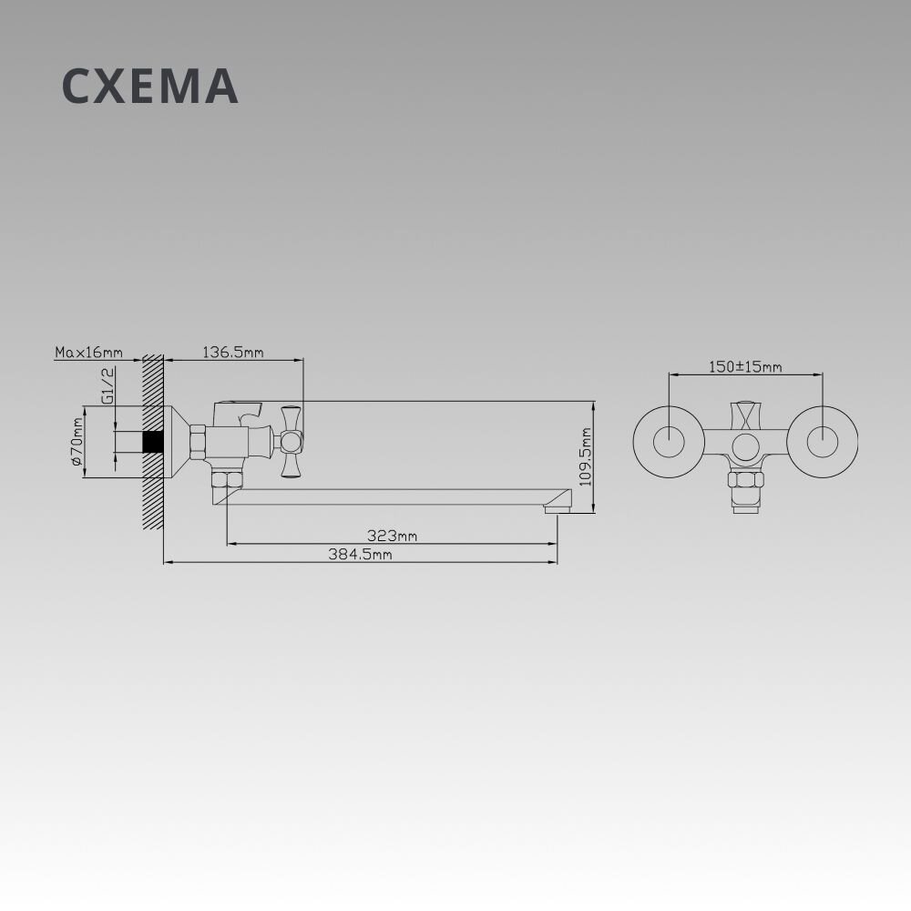- Надёжный цинковый сплав, глянцевое хромированное покрытие, межосевое расстояние 150 мм — удобно для стандартных ванн