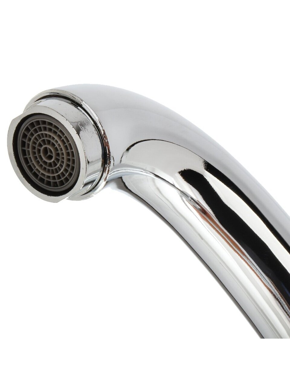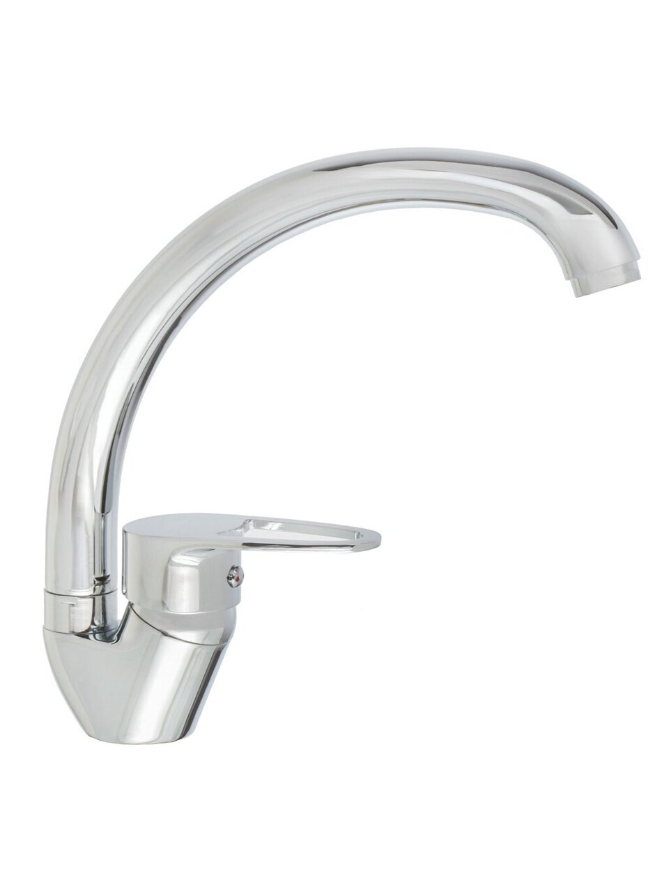 Смеситель оснащен высоким поворотным изливом средней длины — 15 см, что удобно для мытья посуды и наполнения больших кастрюль.
