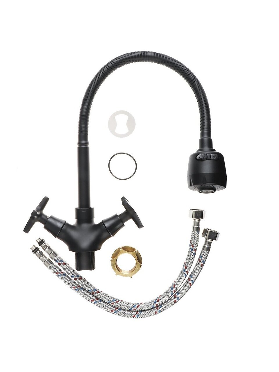 Смеситель для кухни Aqwin A58351-6: гибкий излив, матовый черный, 2 режима струи — стильное решение для быстрой и удобной мойки