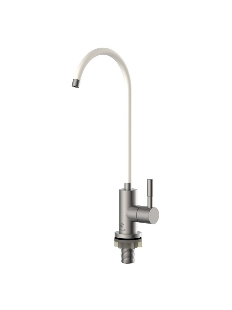 Модель выполнена из нержавеющей стали с латунной кран-буксой. Материал устойчив к ржавчине, а матовая поверхность сохраняет эстетичный внешний вид даже при частом использовании.