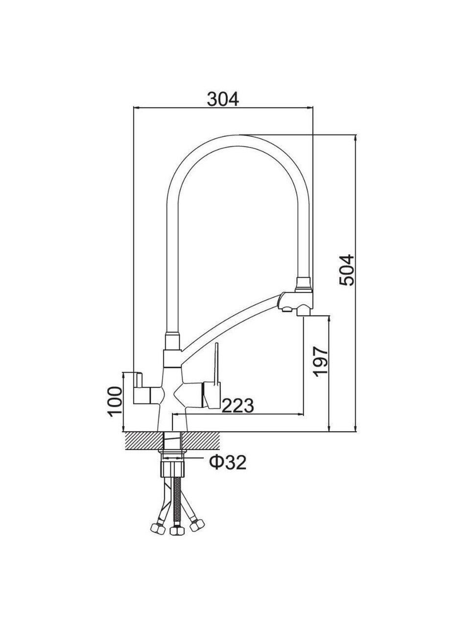 Высота излива — 54 см, длина — 22,3 см. Излив гибкий, что удобно для наполнения крупной посуды и мытья раковины.