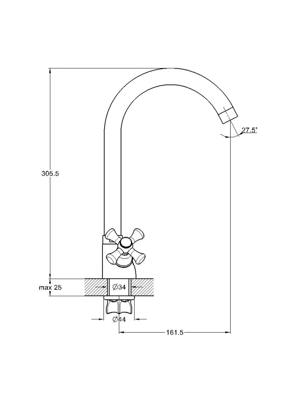 - Параметры: корпус из силумина с глянцевым хромированным покрытием, средний излив 15 см, монтаж в одно отверстие (диаметр 35 мм)