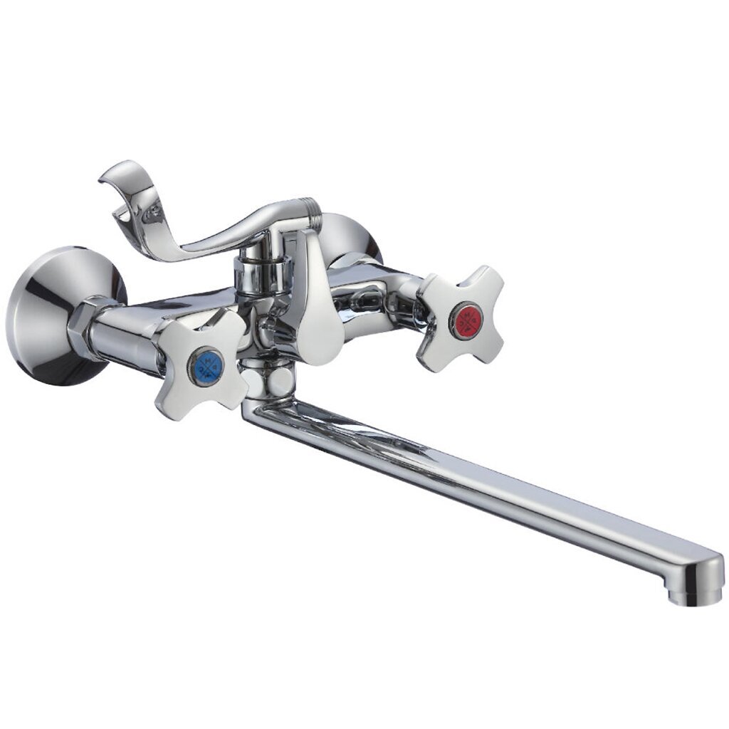 Смеситель для ванны РМС SL115-140E: долговечный двухвентильный кран с длинным изливом 35 см, лейкой и защитой от излома — оптимальное решение для дома и дачи.