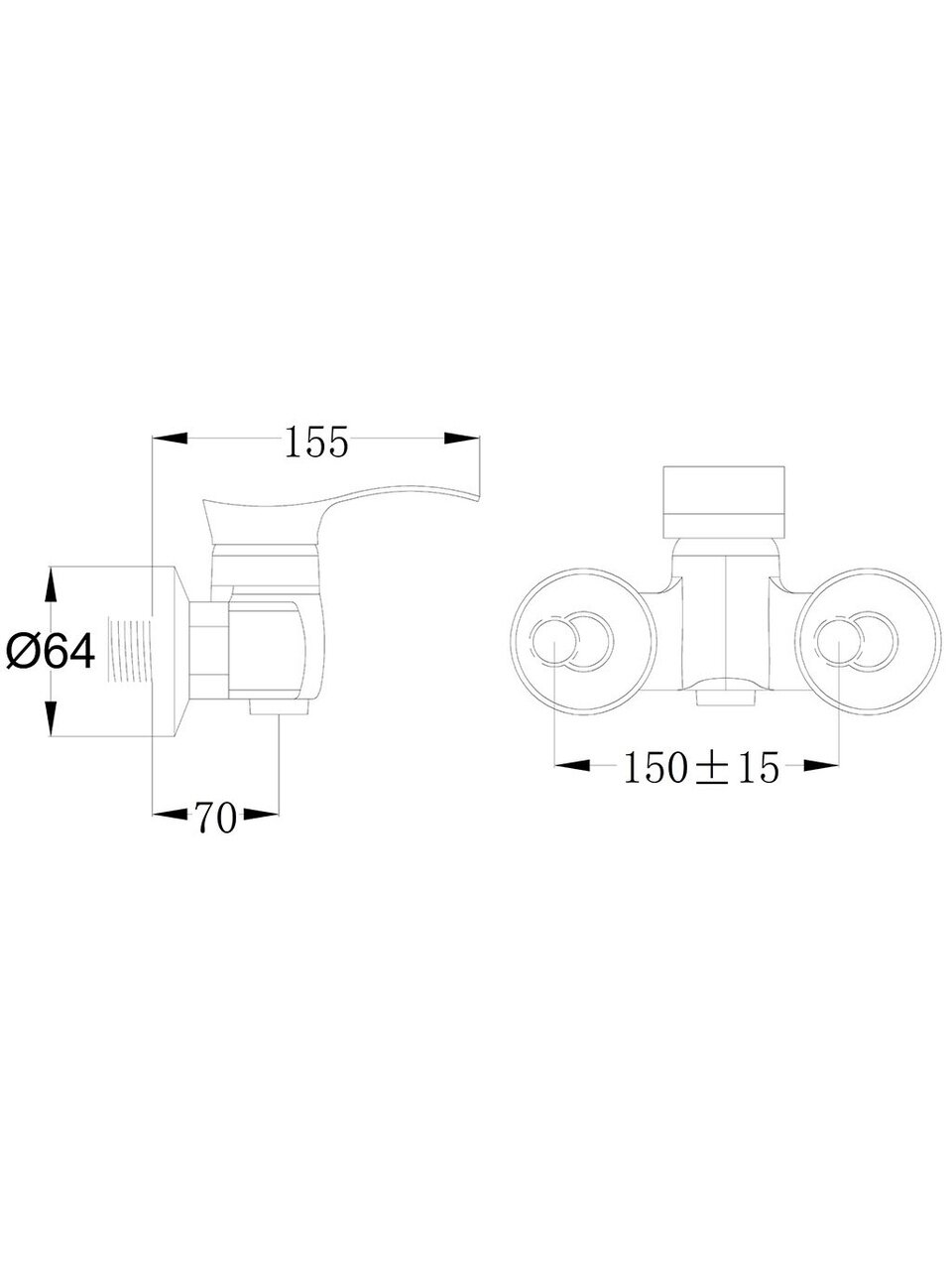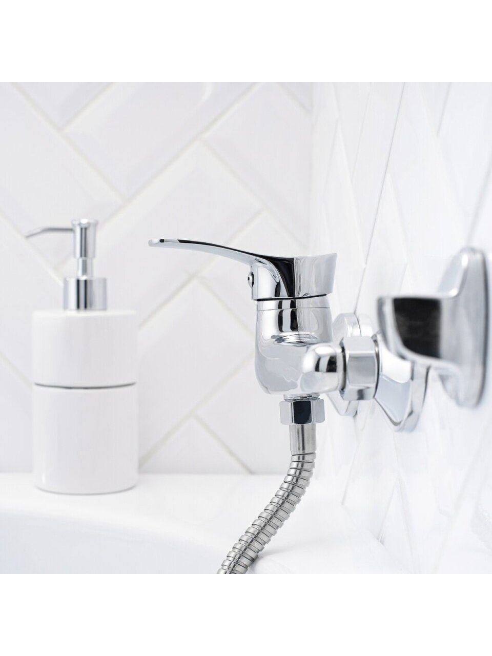 Стандарт подводки шланга — 1/2 дюйма, подходит для большинства душевых систем. Межосевое расстояние для монтажа — 150 мм, крепление на 2 отверстия.