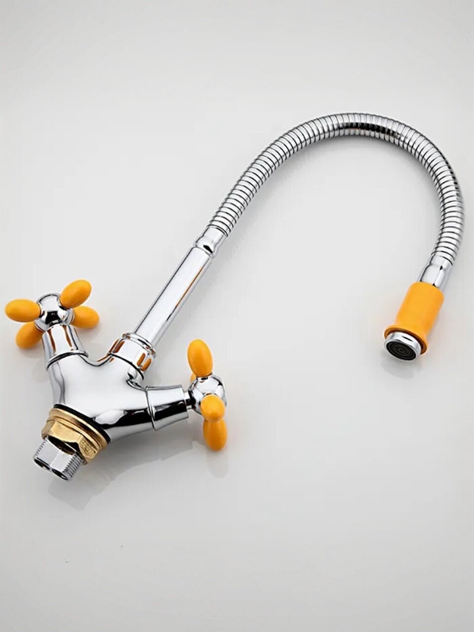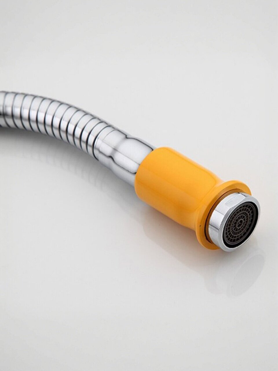 Если вы ищете, какой смеситель выбрать для кухни с гибким изливом, обратите внимание на корпус из силумина — он легкий, прочный и устойчив к коррозии. В отличие от моделей с пластиковым корпусом, этот смеситель выдерживает интенсивную эксплуатацию. Современный стиль, яркий желтый цвет и глянцевая поверхность делают его заметным акцентом в интерьере кухни.