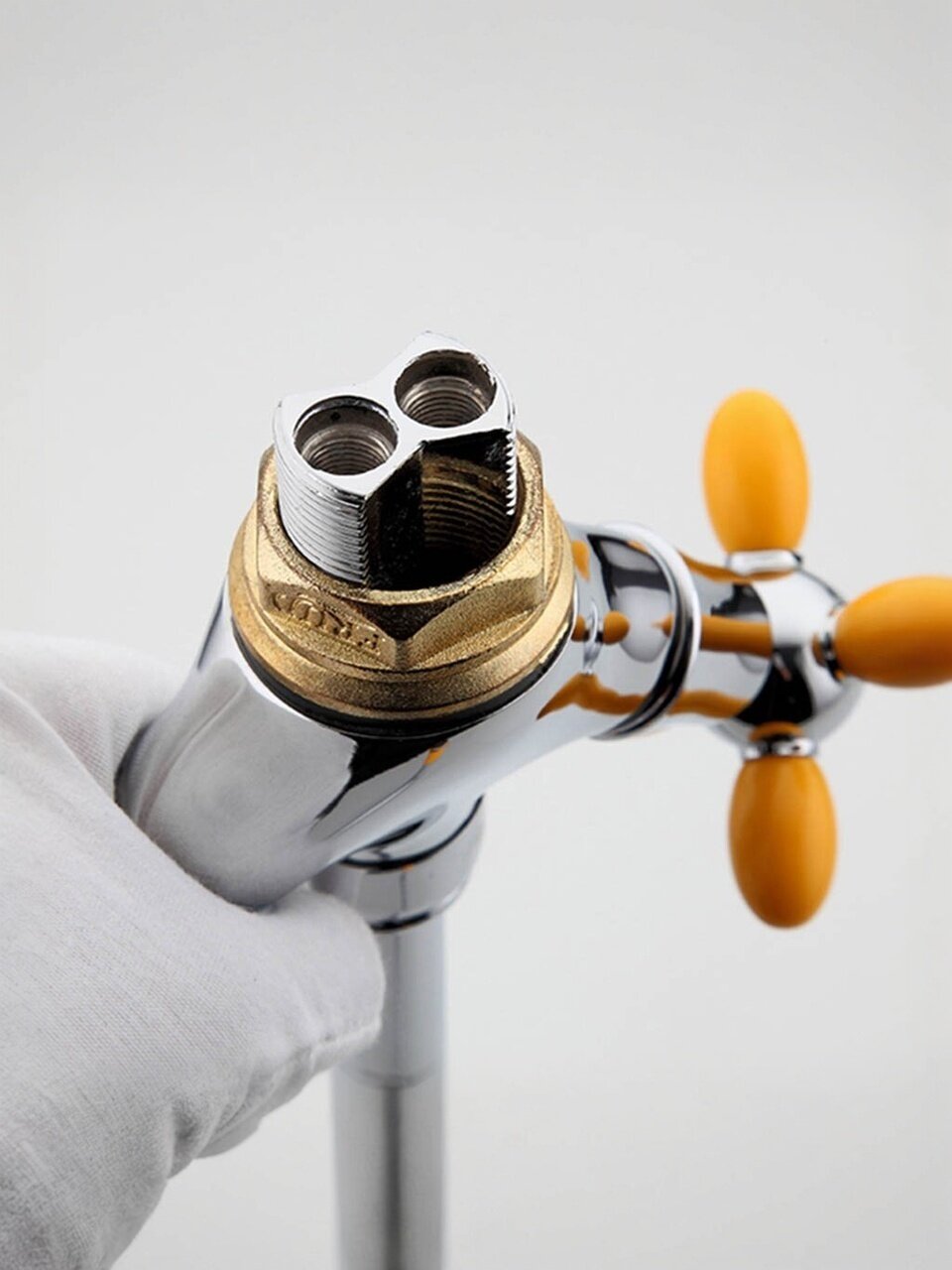 - Корпус из силумина с керамической кран-буксой — долговечность, устойчивость к коррозии, глянцевая поверхность легко очищается