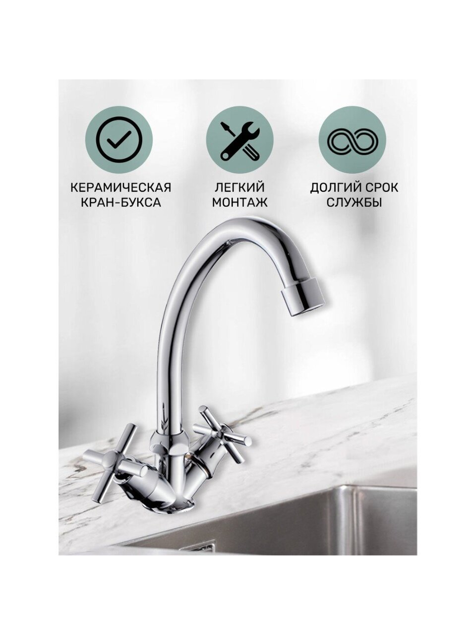Смеситель для кухни Эверест B49-316 — современное решение с керамической кран-буксой и высоким изливом: долговечность, экономия воды и стильный хром для вашей кухни.