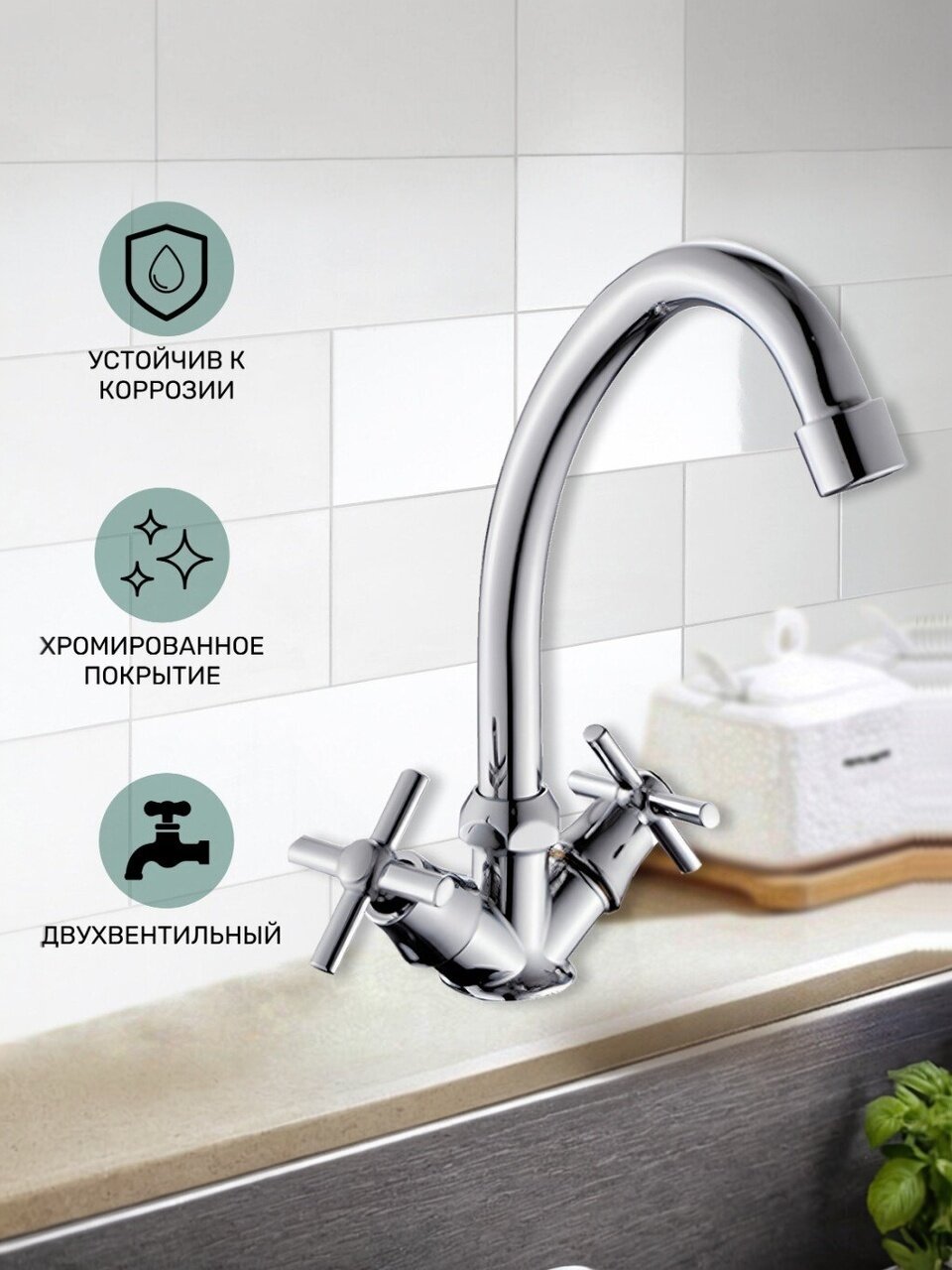 Смеситель для кухни Эверест с артикулом B49-316 — это двухвентильная модель с высоким поворотным изливом и гибкой подводкой, что облегчает монтаж даже в ограниченном пространстве. Благодаря керамической кран-буксе, управление подачей воды становится максимально плавным и долговечным, а риск протечек сведен к минимуму. Глянцевый хром подчеркивает современный стиль кухни, а корпус из силумина устойчив к коррозии и длительной эксплуатации.