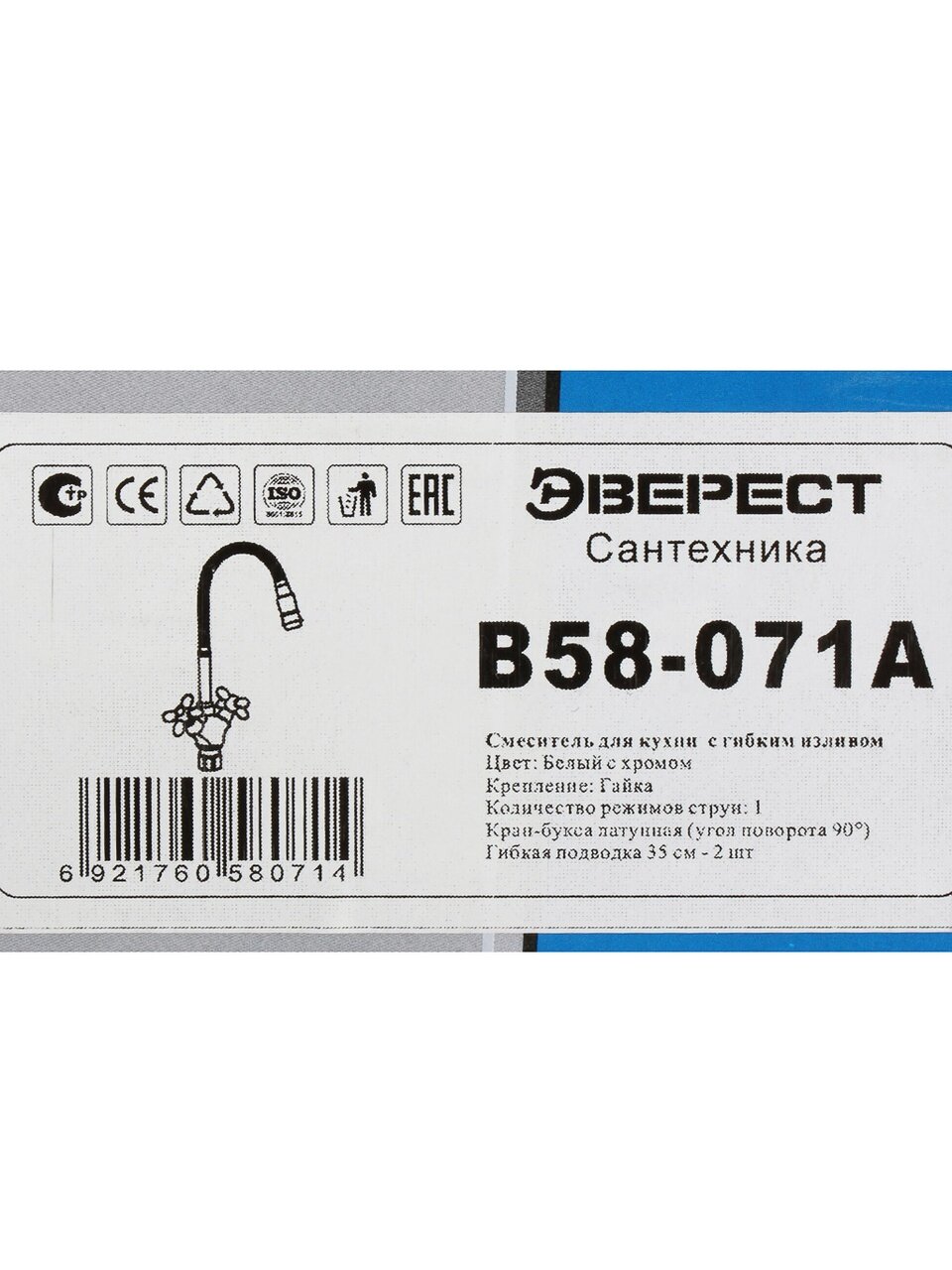Вы можете приобрести «Смеситель для кухни, Эверест, гибкий излив, с кран-буксой, белый, B58-071A» и другие товары в нашем интернет-магазине в Санкт-Петербургe по низким ценам и с бесплатным самовывозом.