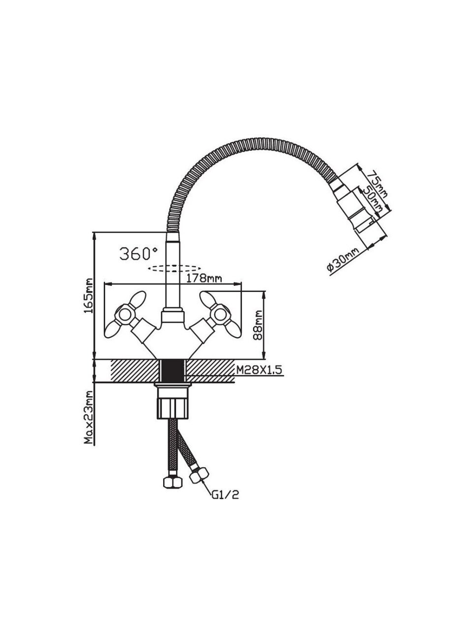 Для установки требуется одно отверстие диаметром 35 мм, стандарт подводки — 1/2 дюйма, крепление осуществляется гайкой.