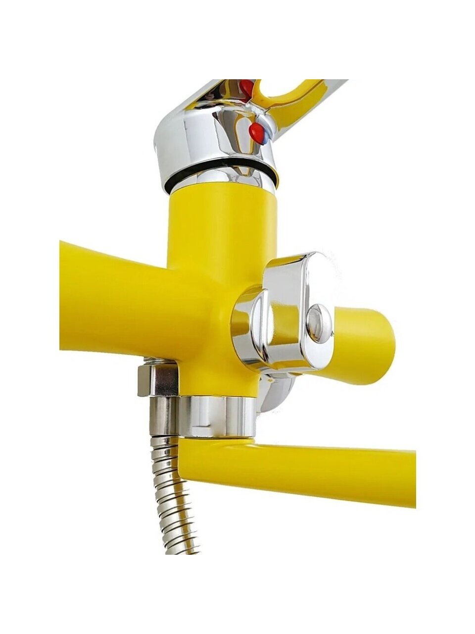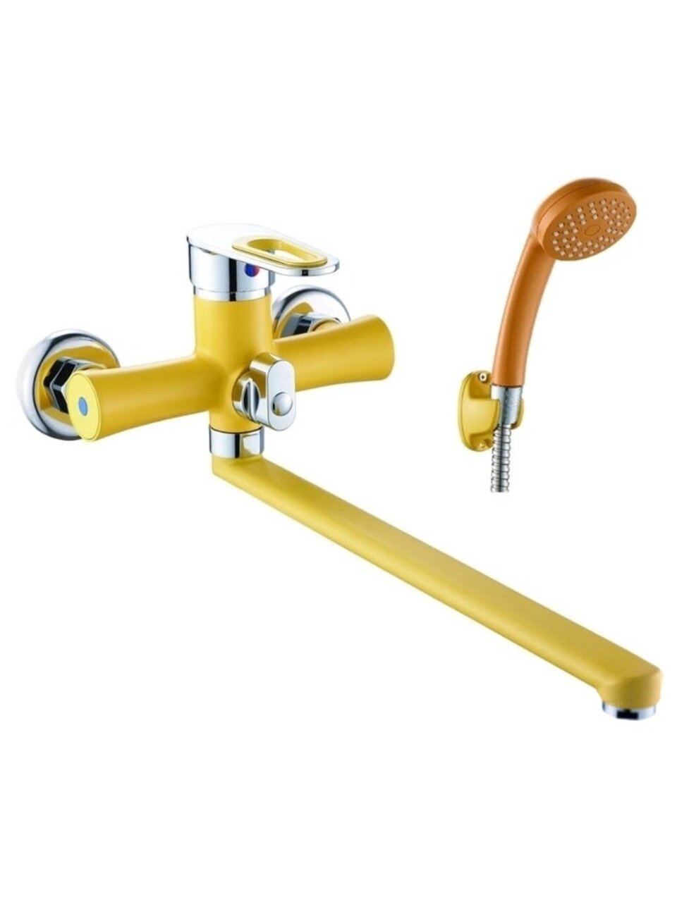 Смеситель для ванны Эверест B22-274B — стильный желтый акцент, долговечный цинковый сплав и керамический картридж для комфортного душа и ванны.