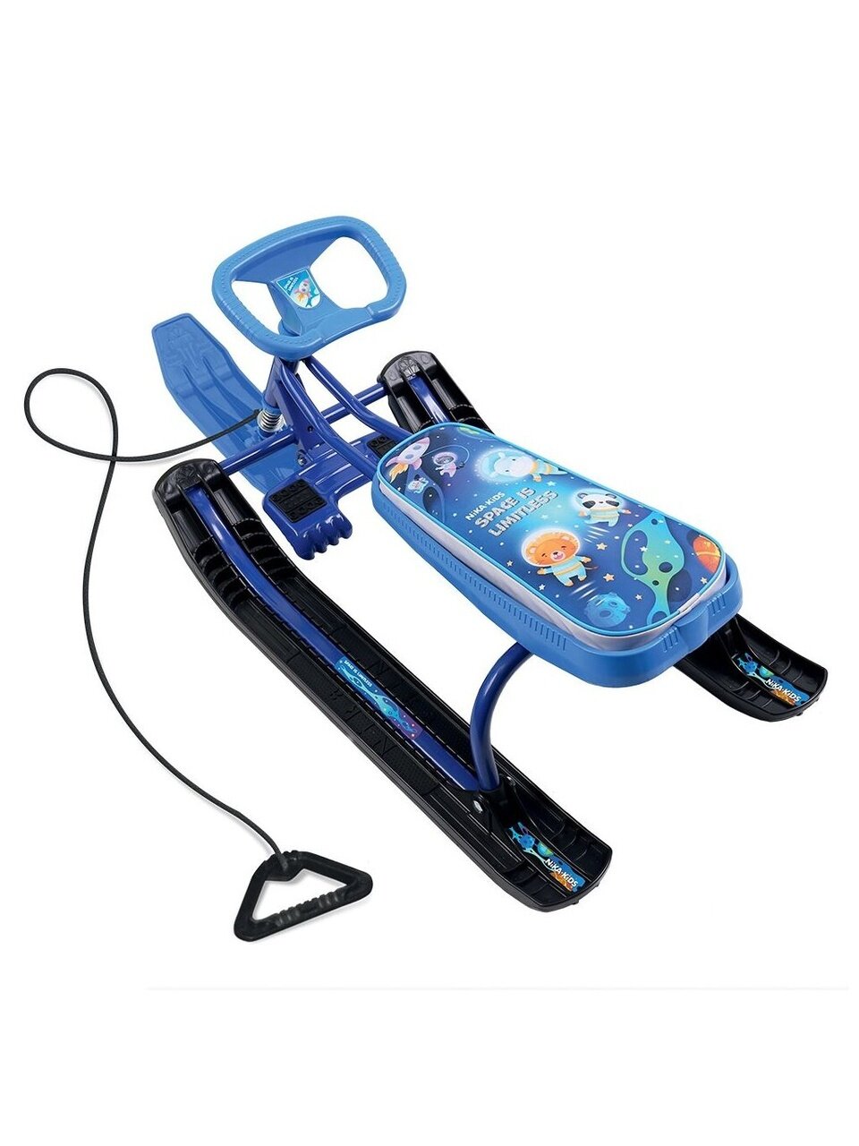 - Спортивный руль обеспечивает надежное управление и позволяет ребенку легко маневрировать на сложных участках трассы. Буксировочный трос поможет вам быстро и безопасно перемещать снегокат, а усиленный тормоз гарантирует безопасность и контроль скорости.