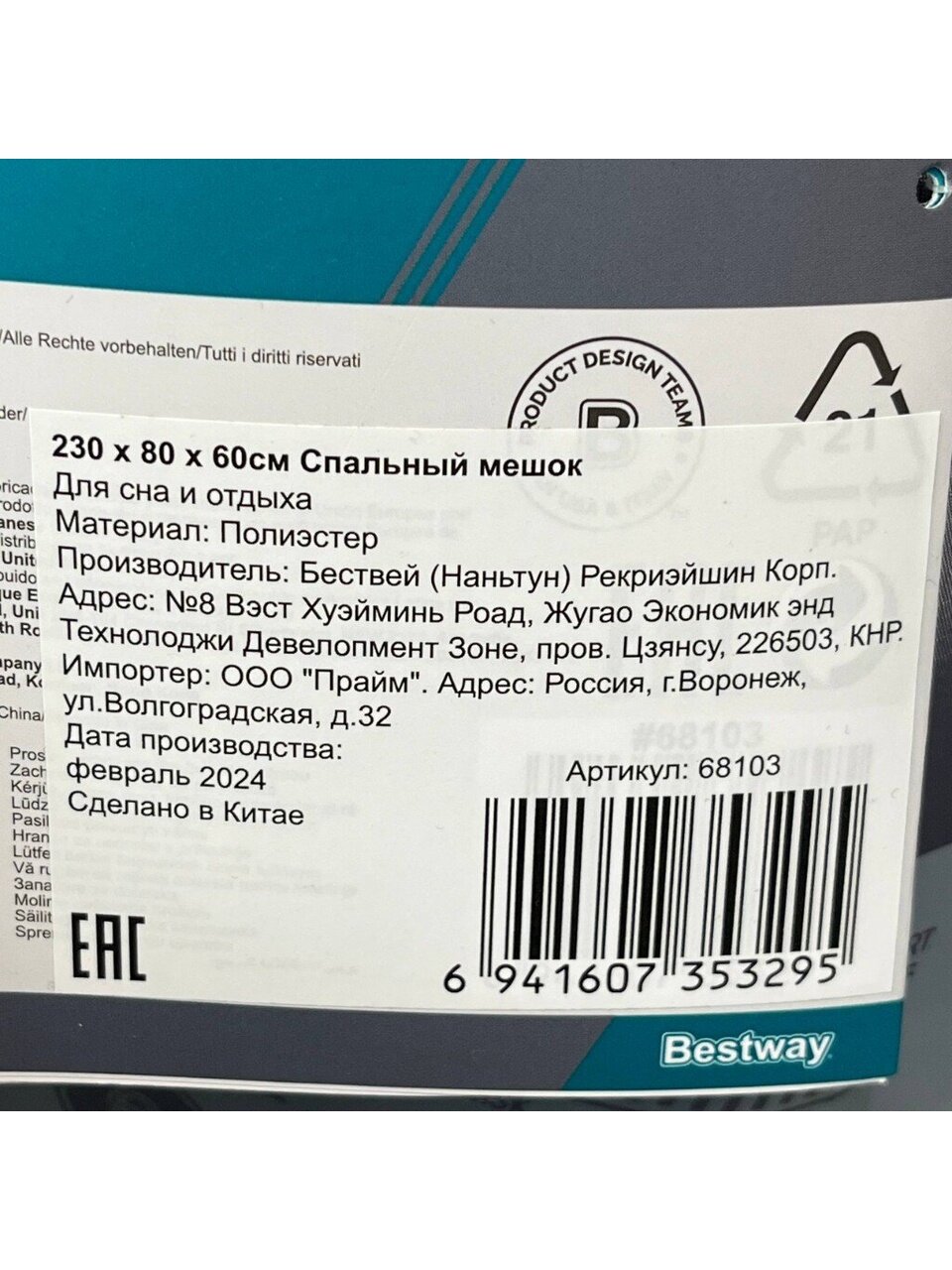 Вы можете приобрести «Спальный мешок кокон, 230х80х55 см, -1 °C, 4 °C, 2 слоя, полиэстер, холлофайбер, Bestway, 68104» и другие товары в нашем интернет-магазине в Иваново по низким ценам и с бесплатным самовывозом.