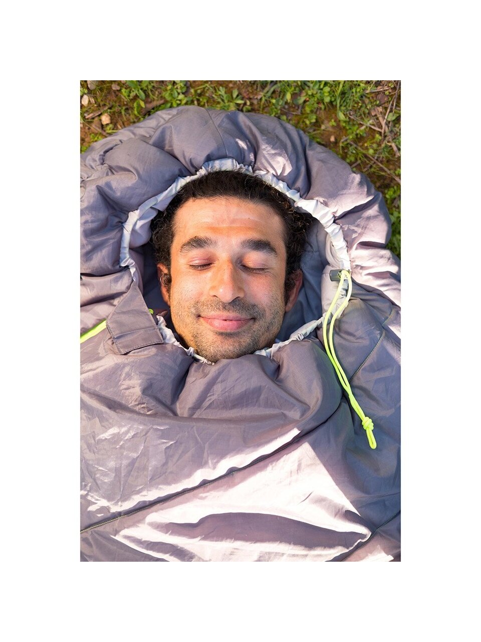 Кокон - отличается анатомической формой: широкий в плечах, сужающийся к ногам. Благодаря этому спальный мешок лучше облегает тело и сохраняет тепло. Все швы с внешней и внутренней сторон смещены друг относительно друга, что также препятствует потере тепла.