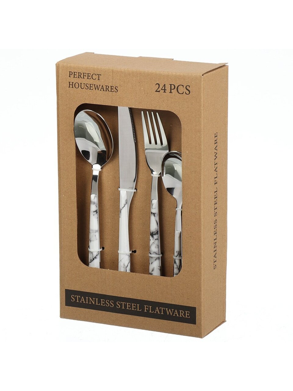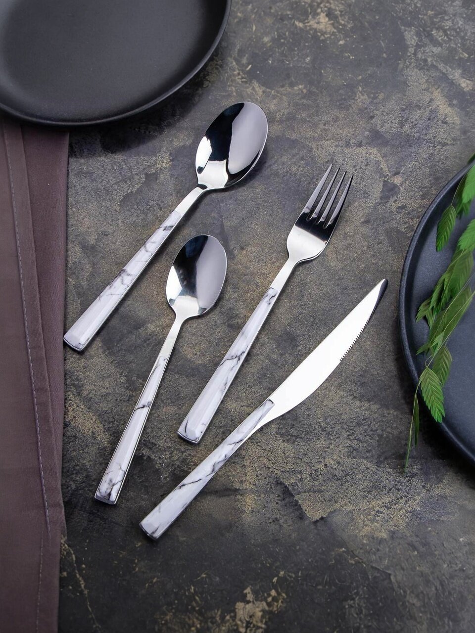 Набор столовых приборов 24 предмета «Белый мрамор, глянец» — элегантное решение для сервировки на 6 персон, подходит для дома, дачи и подарка. Удобство, современный стиль и выгодная цена.