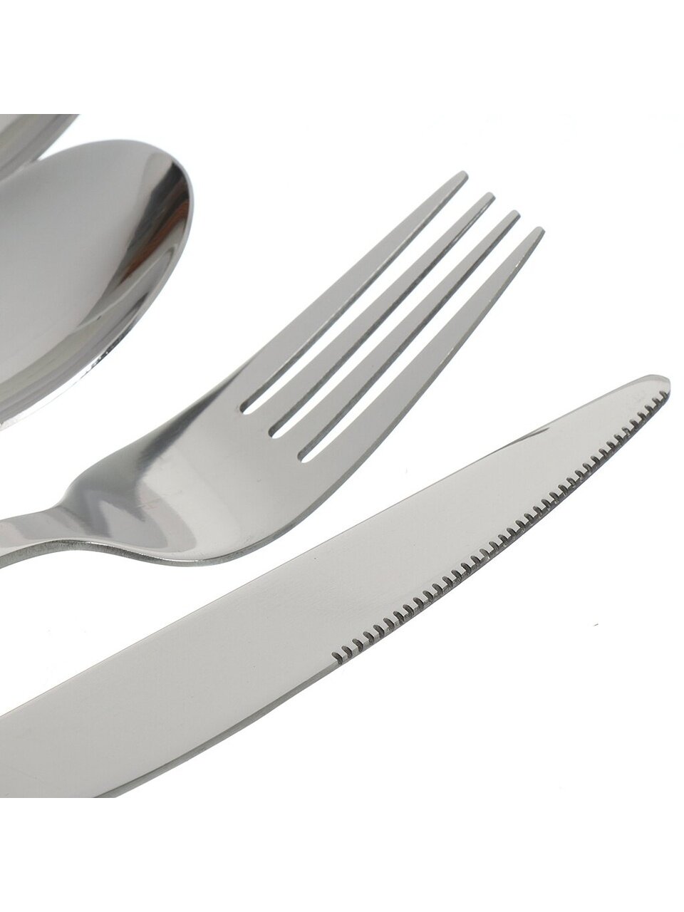 В комплекте 24 предмета: ложки, вилки, ножи и чайные ложки на 6 персон, что идеально для семьи или небольшой компании.