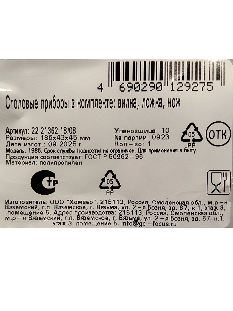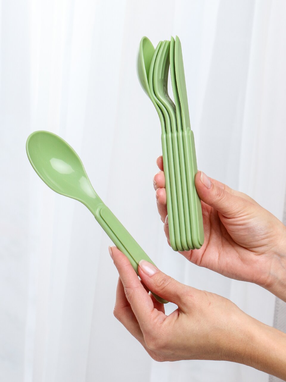 Набор столовых приборов пластик, 6 предметов, зеленый, столовый, 222136218/08, вилка, ложка, нож