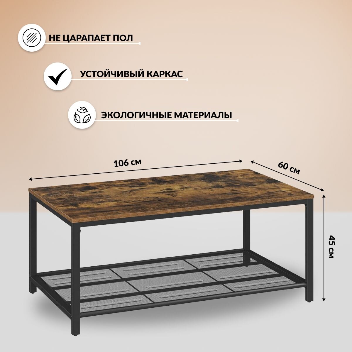 - Большая поверхность позволяет разместить на ней множество вещей, а нижняя сетчатая полка предлагает дополнительное место для ваших книг, корзин для хранения и многого другого.