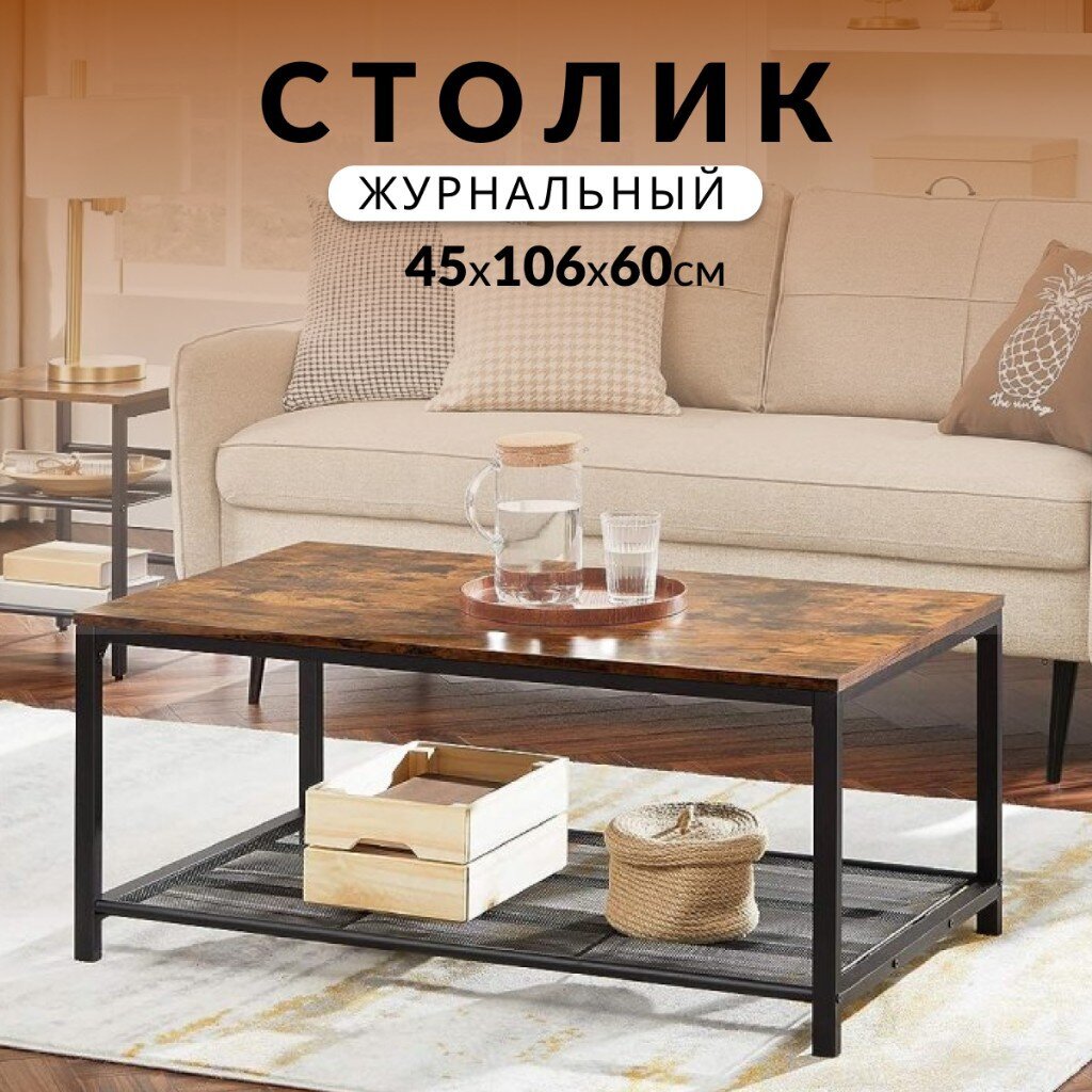 Вы можете приобрести «Столик журнальный 45х106х60 см, ДСП+сталь, с полкой, Лофт, LCT64X» и другие товары в нашем интернет-магазине в Таганроге по низким ценам и с бесплатным самовывозом.