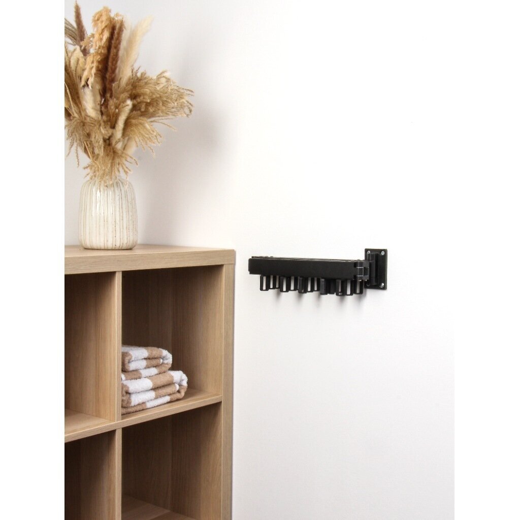 Сушилка для белья настенная складная 124х10х6.4 см — практичное решение для комфортной организации пространства в доме или на даче. Современный дизайн в черном цвете гармонично впишется в любой интерьер и подчеркнет стиль помещения. Настенное размещение позволяет экономить место, а складная конструкция обеспечивает удобство хранения и использования даже в небольших комнатах. Металлическая основа и перекладины гарантируют надежность и долговечность, выдерживая максимальную нагрузку до 30 кг, что делает сушку белья максимально эффективной и безопасной.