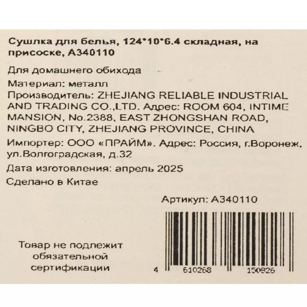 Вы можете приобрести «Сушилка для белья настенная, 124х10х6.4 см, складная, 30 кг, A340110» и другие товары в нашем интернет-магазине в Ярославле по низким ценам и с бесплатным самовывозом.