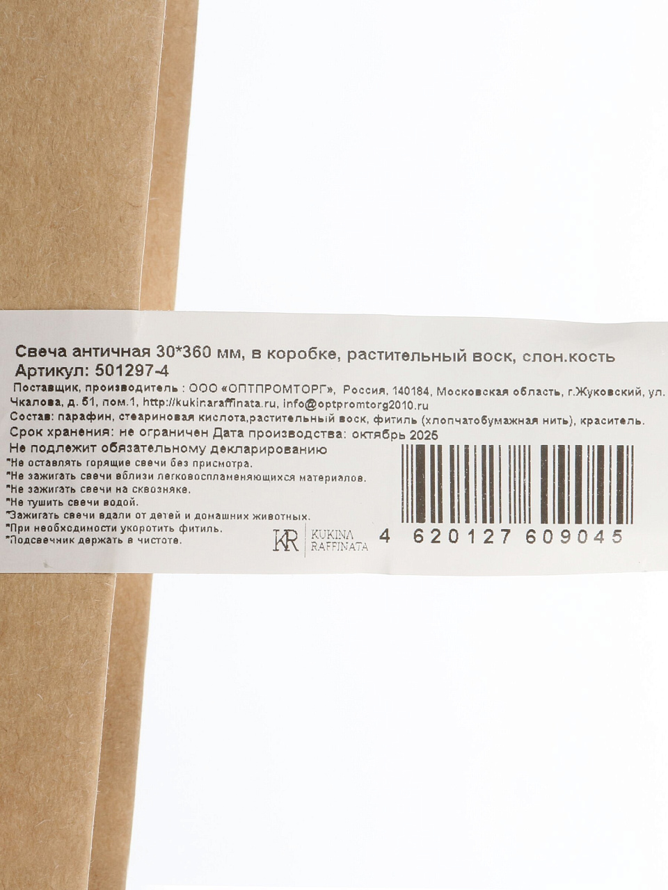Свеча декоративная античная 30х36 см, слоновая кость — стильный акцент для интерьера, долговечность и универсальность для дома, дачи или подарка.