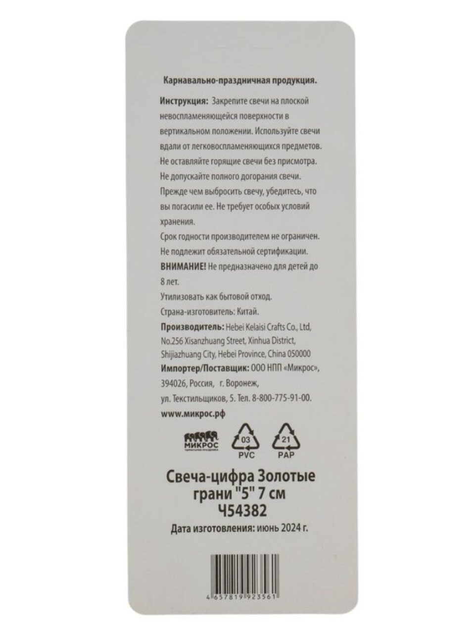 Вы можете приобрести «Свеча для торта, 7 см, Микрос, Золотые грани, Цифра №5, Ч54382» и другие товары в нашем интернет-магазине в Тамбове по низким ценам и с бесплатным самовывозом.