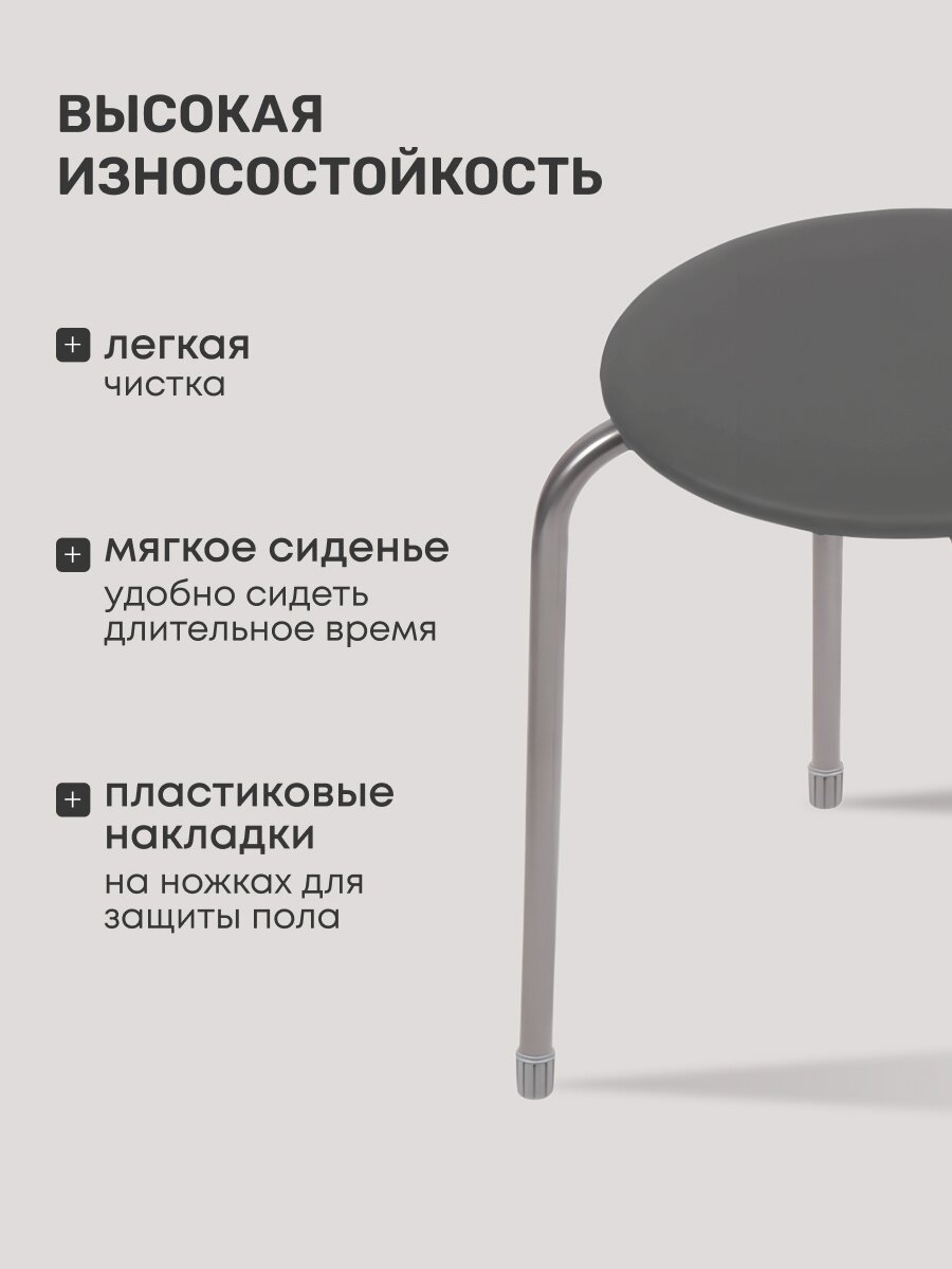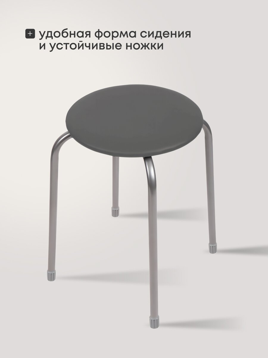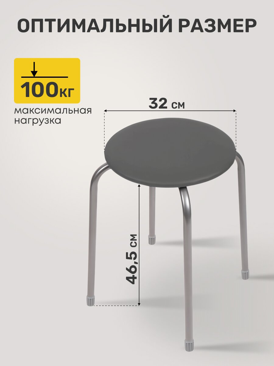 Табурет 320х320х470 мм Nika: удобство для кухни, дачи и офиса, выдерживает до 100 кг, стильный серый цвет, мягкое сиденье из винилискожи — выгодное решение по цене и комфорту.