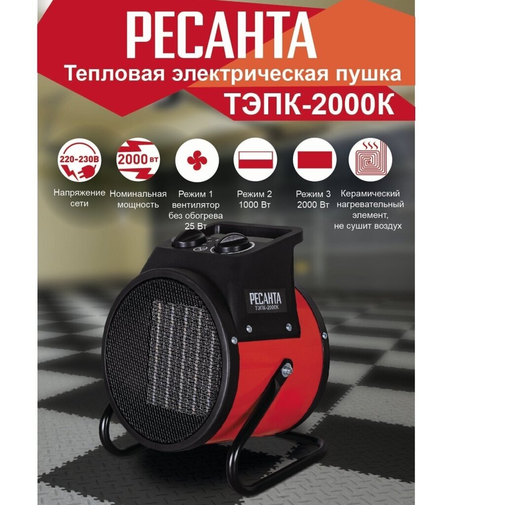 Вы можете приобрести «Пушка тепловая электрическая, Ресанта, ТЭПК-2000К, 2 кВт, 200 м³/ч, керамический элемент, 2 режима, круглая, 67/1/24» и другие товары в нашем интернет-магазине в Обнинске по низким ценам и с бесплатным самовывозом.