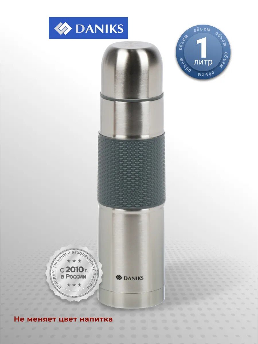 Термос Daniks 1 л из нержавеющей стали: сохраняет тепло и холод до 24 часов, универсальная горловина, идеален для города, спорта и путешествий