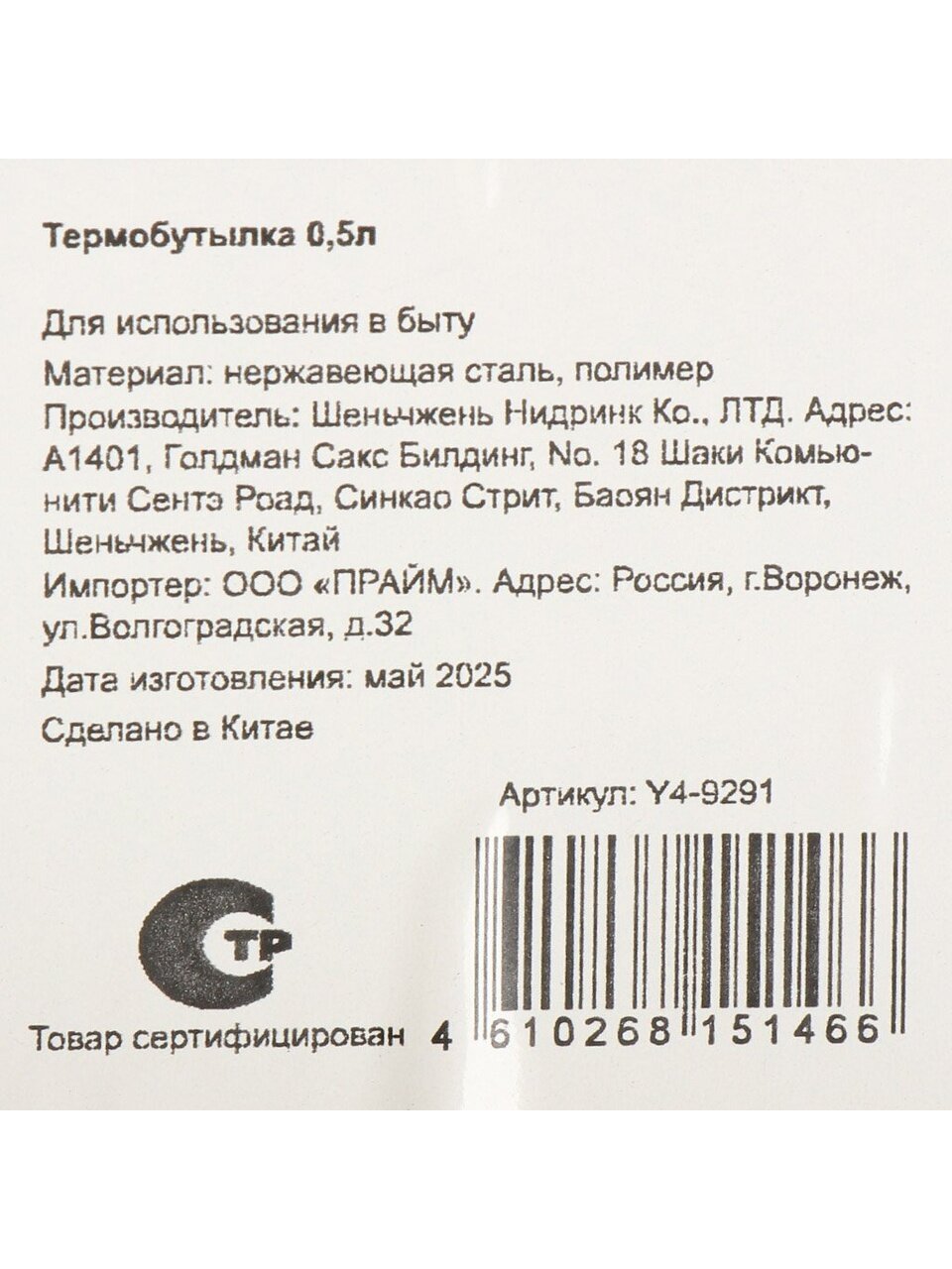 - Компактный объём 0.5 л, прочный корпус из нержавеющей стали и полимера — долговечность и лёгкость.