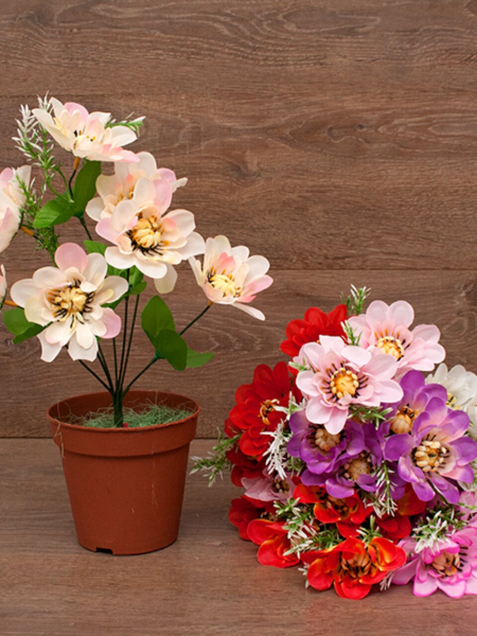 - Практичный размер — 35 см, букет из пластика и текстиля, не выцветает и не теряет форму.