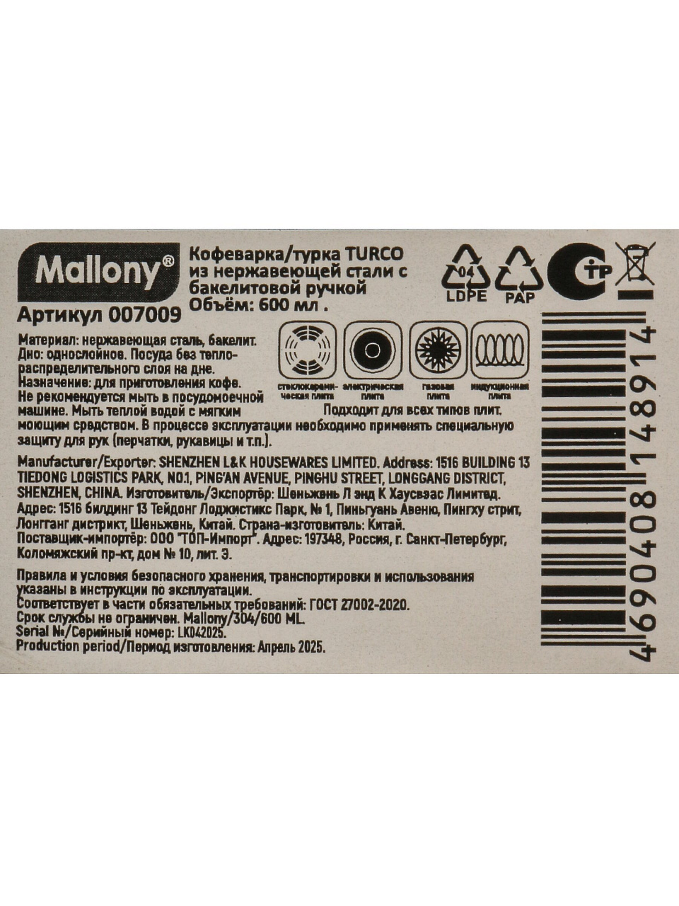 Вы можете приобрести «Кофеварка 0.6 л, нержавеющая сталь, ручка бакелитовая, Turco, 007009» и другие товары в нашем интернет-магазине в Краснодаре по низким ценам и с бесплатным самовывозом.