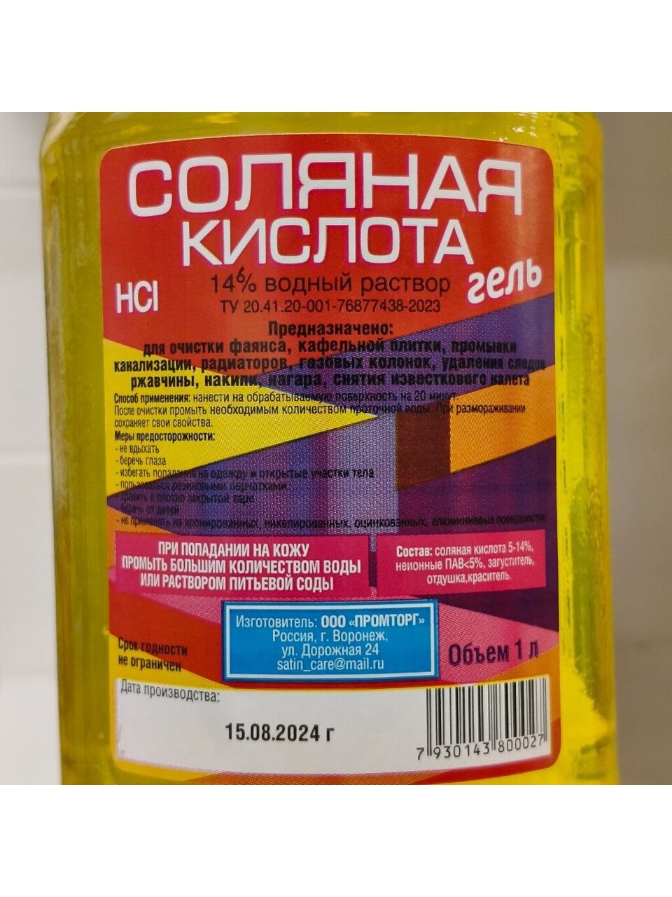 Чистящий гель на основе соляной кислоты - идеальное средство для поддержания чистоты и порядка в вашем доме. Благодаря своей уникальной формуле, он с легкостью удаляет даже самые сложные загрязнения, не повреждая поверхность. Универсальный в использовании, наш гель подходит для очистки раковин, унитазов, кафельной плитки, промывки радиаторов, снятия известкового налета.