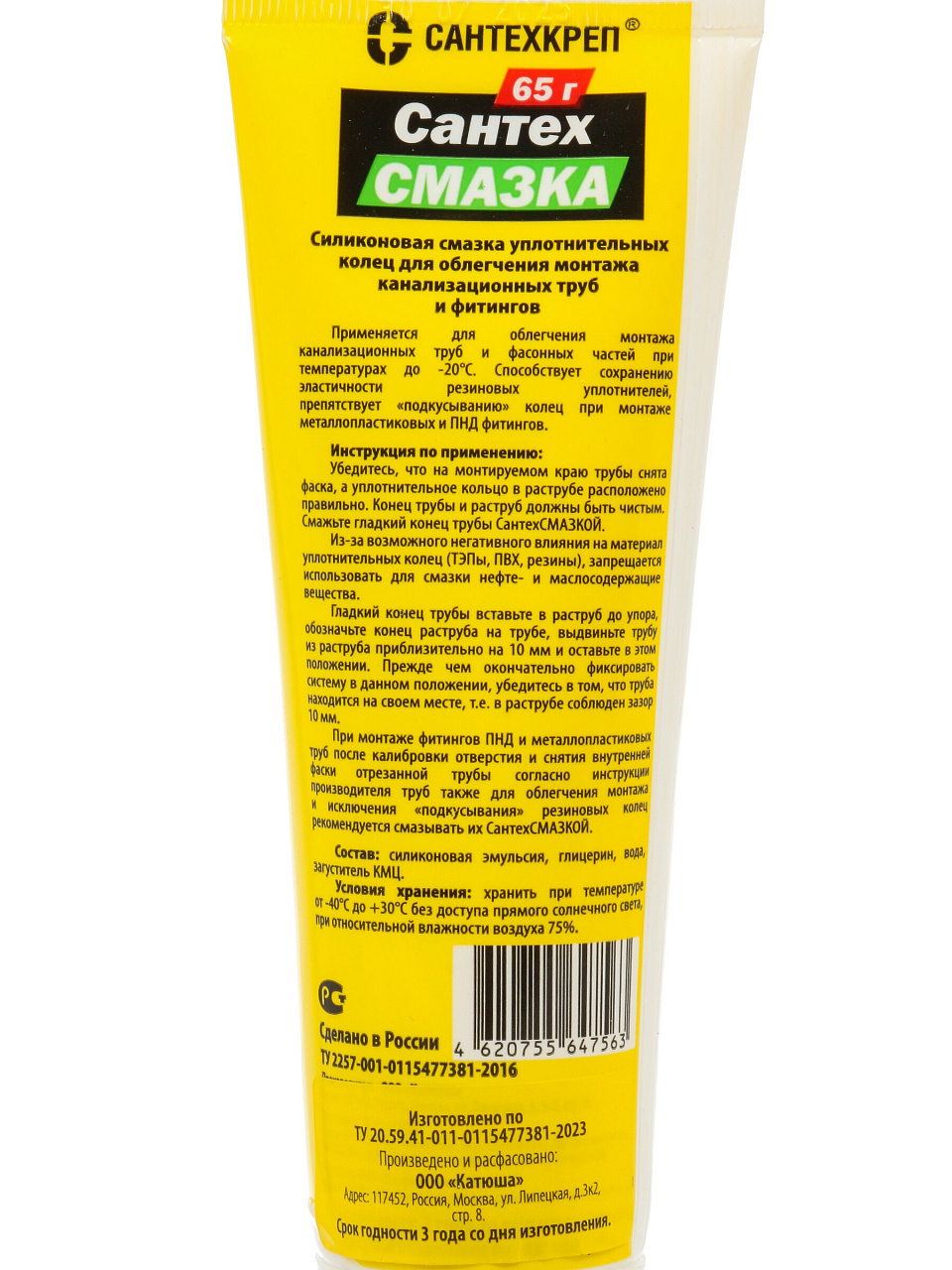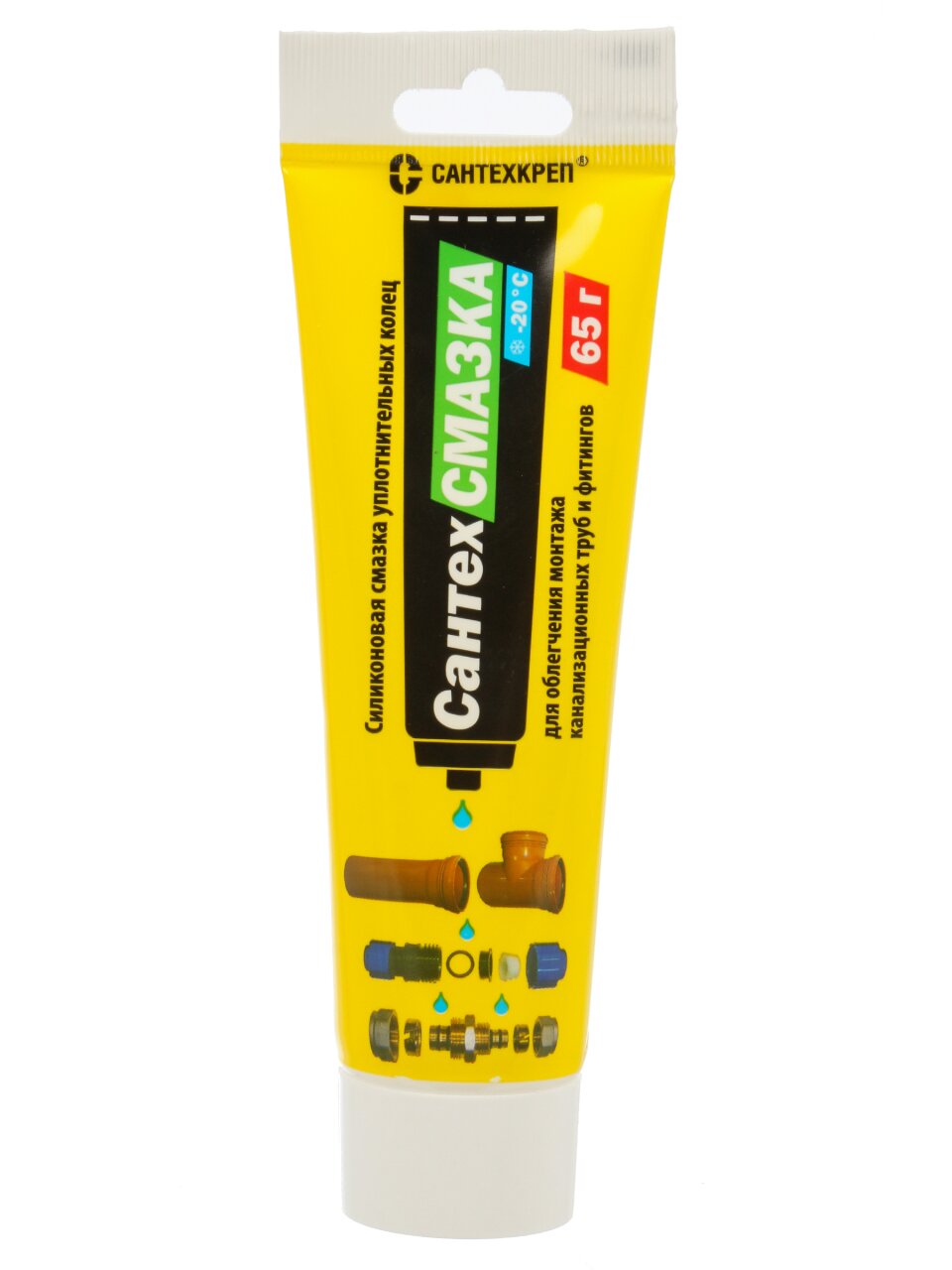 - Удобная туба 65 г — хватает на несколько соединений, легко наносить даже в труднодоступных местах, подходит для стандартных резиновых колец.
