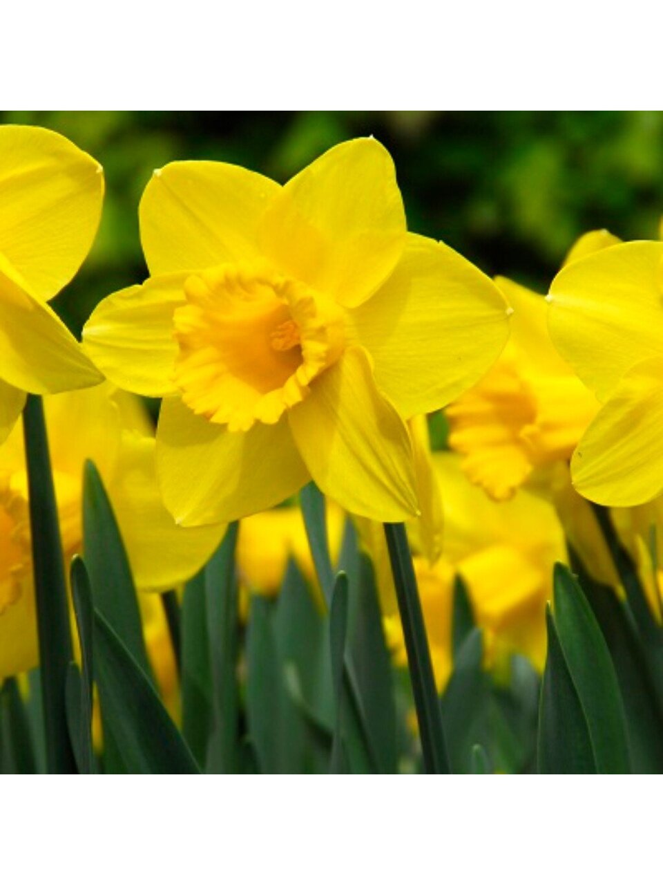 Луковицы среднего размера, сорт крупнокорончатый, цвет цветка — насыщенный жёлтый, подходит для любых клумб и букетов.