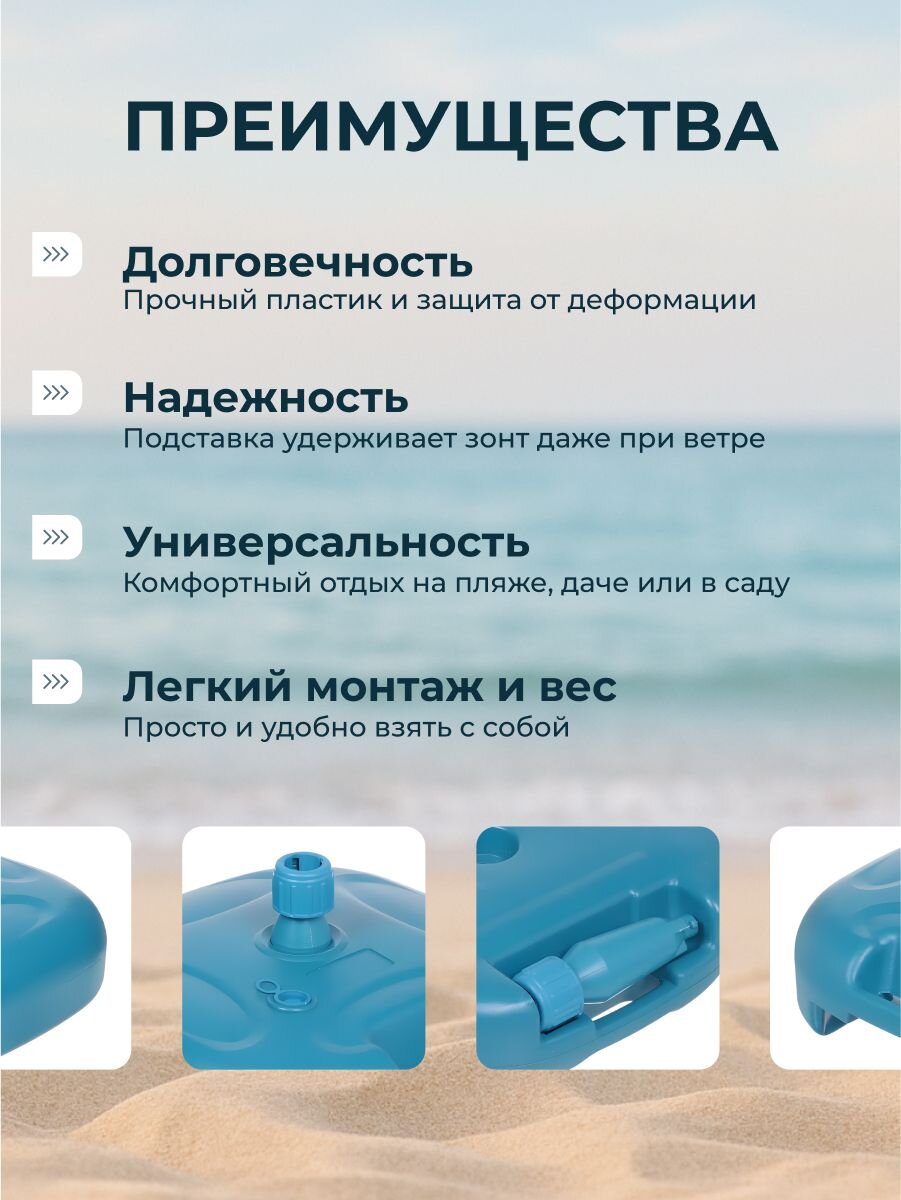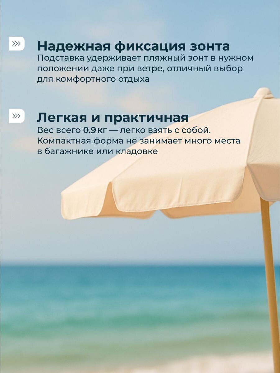 Подставка под пляжный зонт представляет собой надежное, удобное и практичное приспособление, которое позволит надежно удерживать зонт в нужном положении.